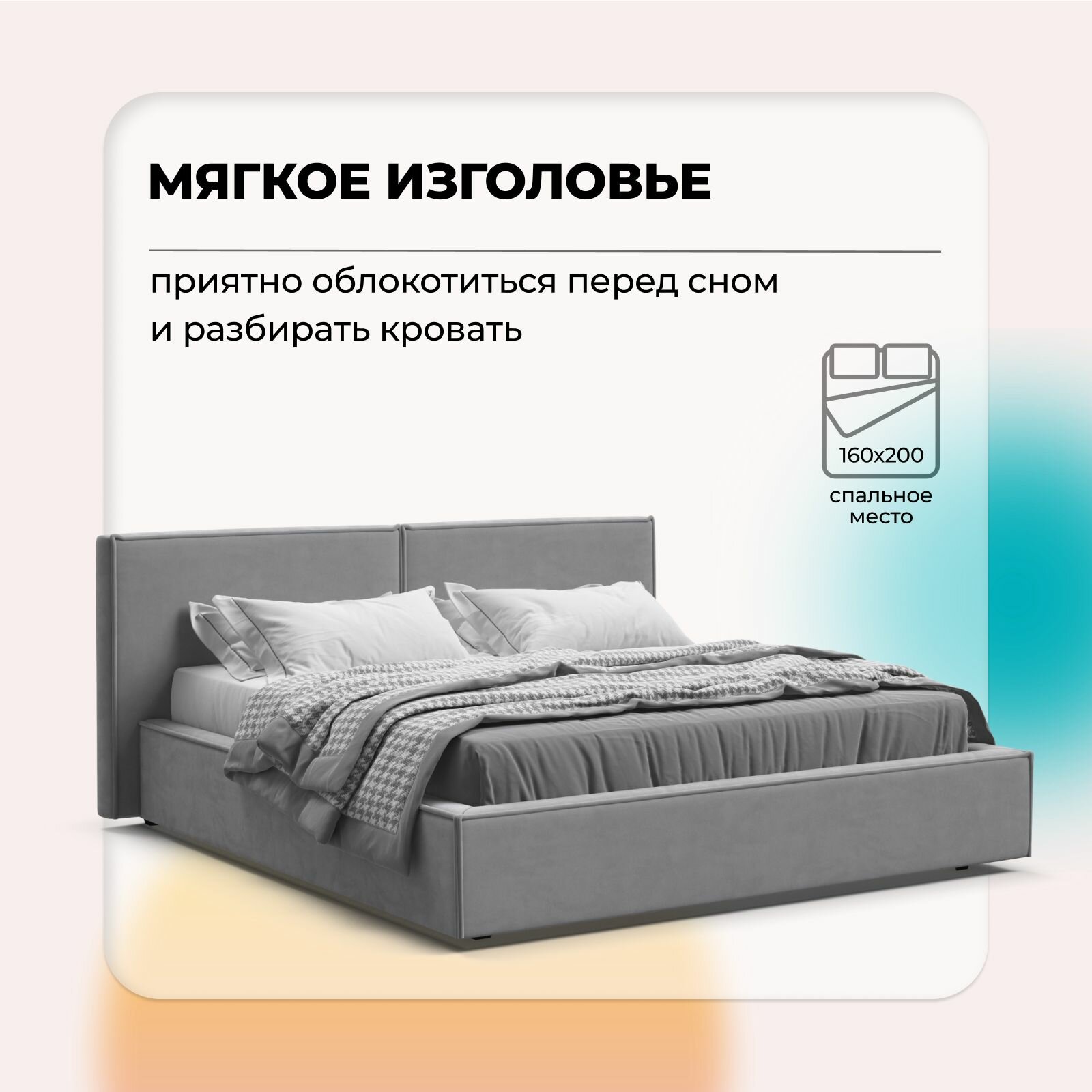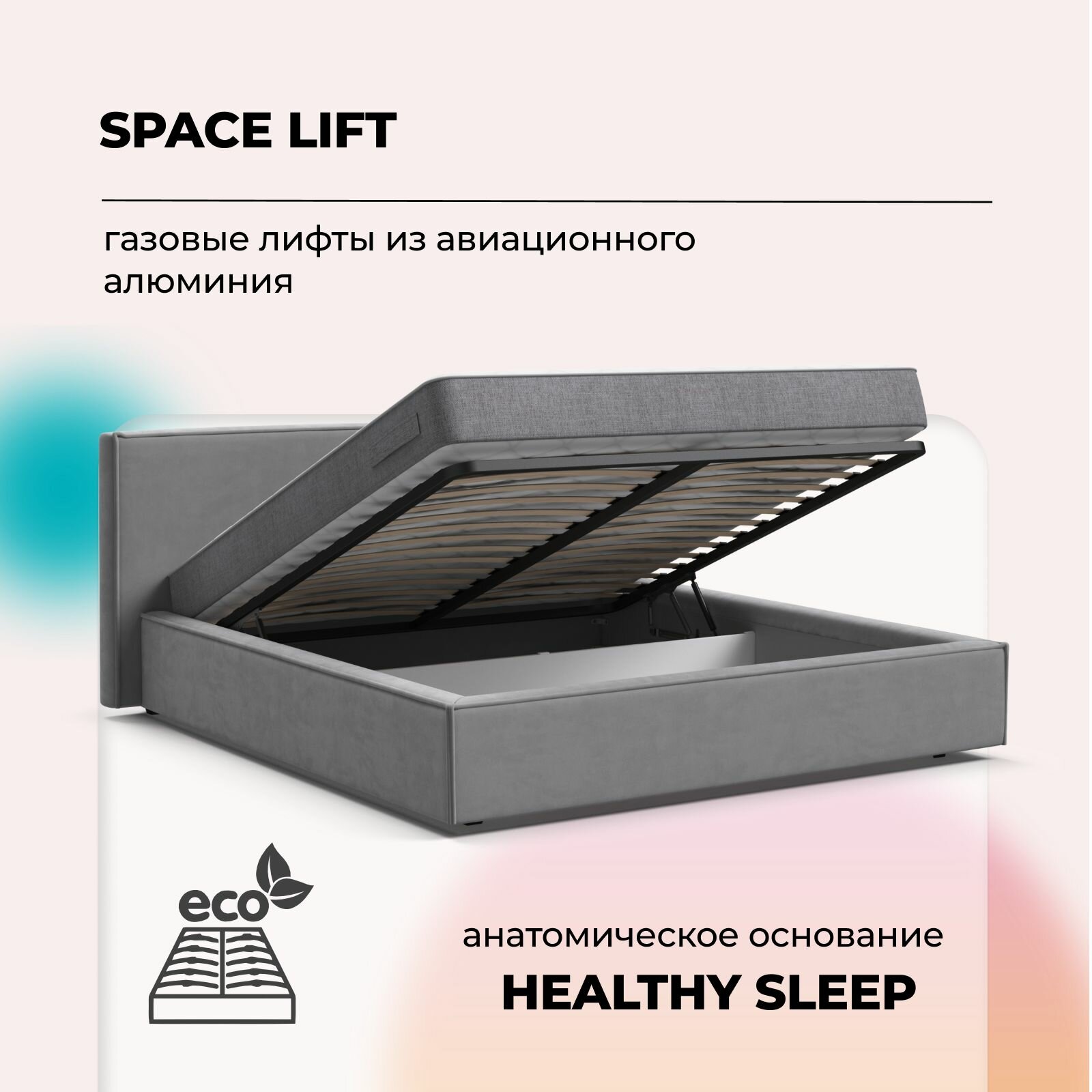 Отзывы на Двуспальная кровать Nord с подъемным механизмом, велюр Monolit сталь, 196x224x95 см