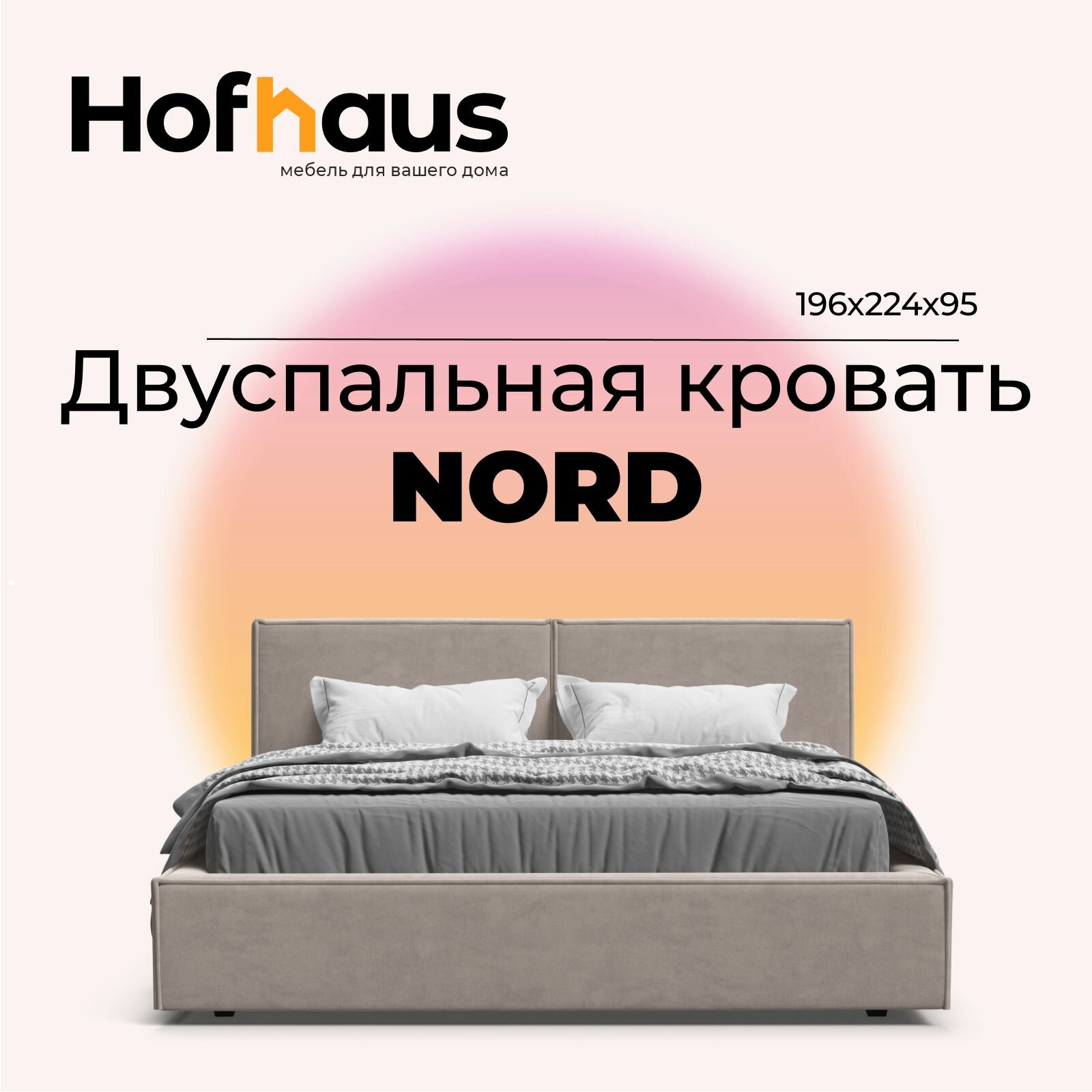 Отзывы на Двуспальная кровать Nord с подъемным механизмом, велюр Monolit латте, 196x224x95 см
