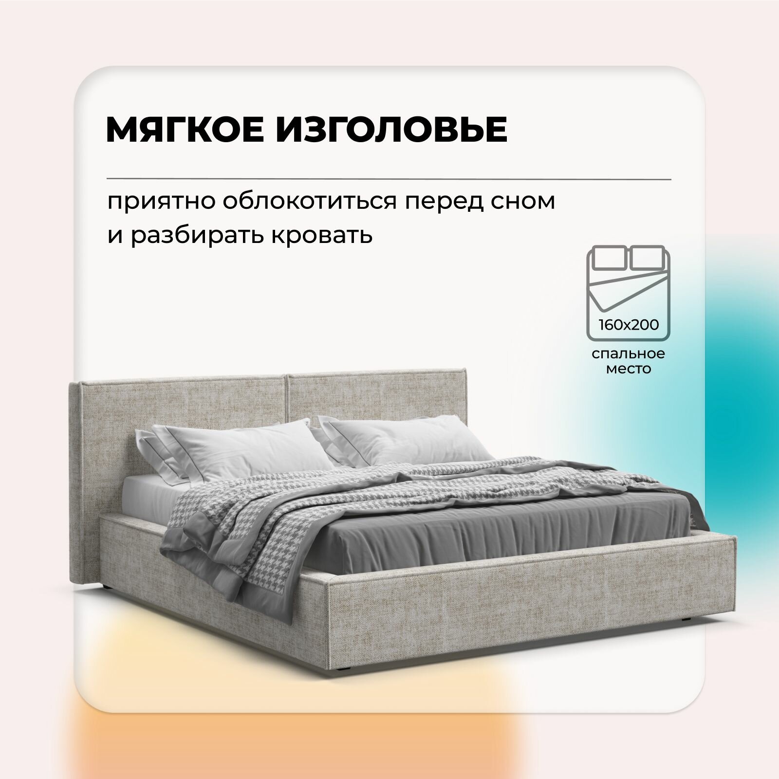 10 цен на Двуспальная кровать Nord с подъемным механизмом, шенилл IQ кварц, 196x224x95 см