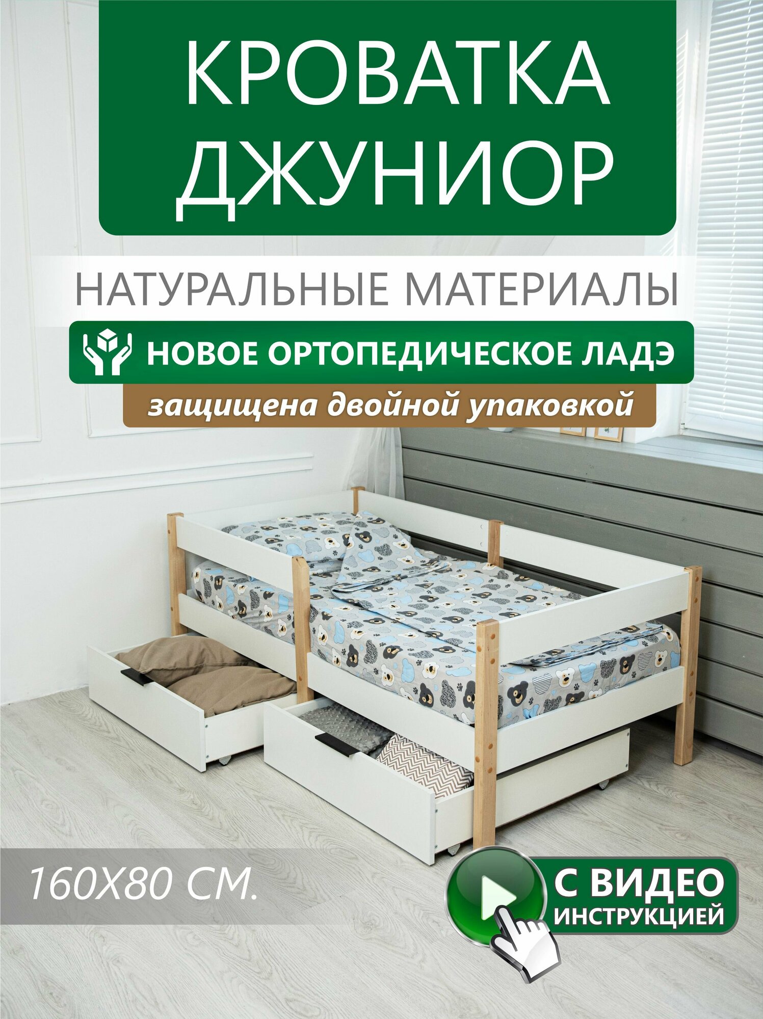 Кровать односпальная Джуниор 160x80 белый/лак информация: