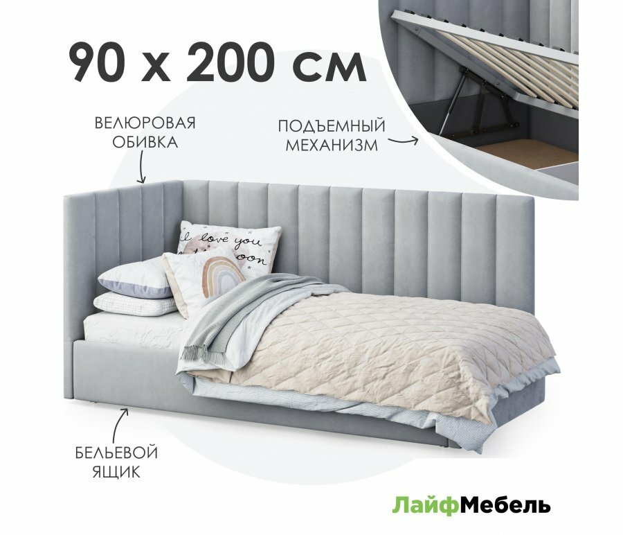 Мягкий диван кровать детская/ подростковая софа с подъемным механизмом асти 90х200 правая