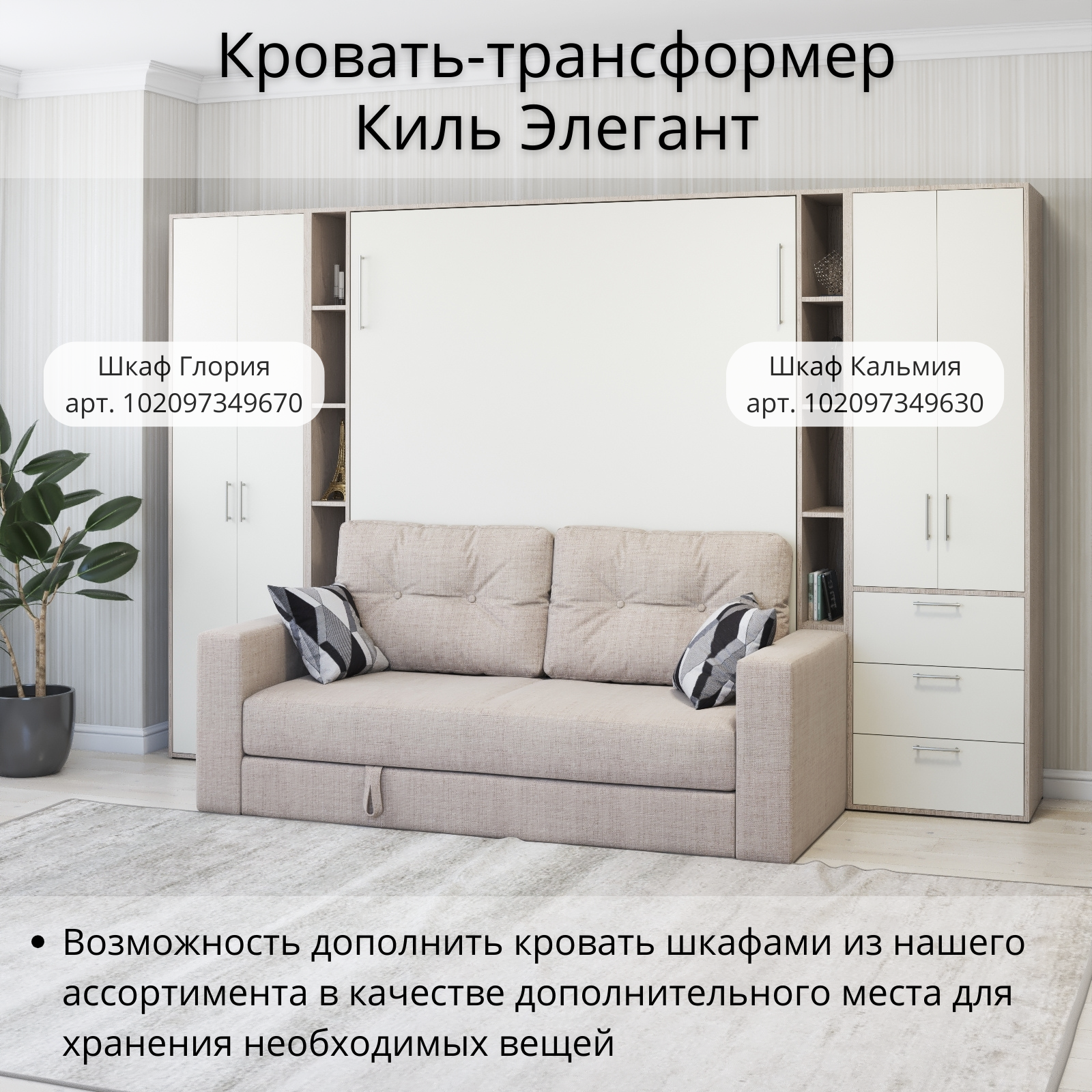 Шкаф кровать трансформер с креплением к стене, Stylint, Киль Элегант, 160х200, Белый 126 816 ₽