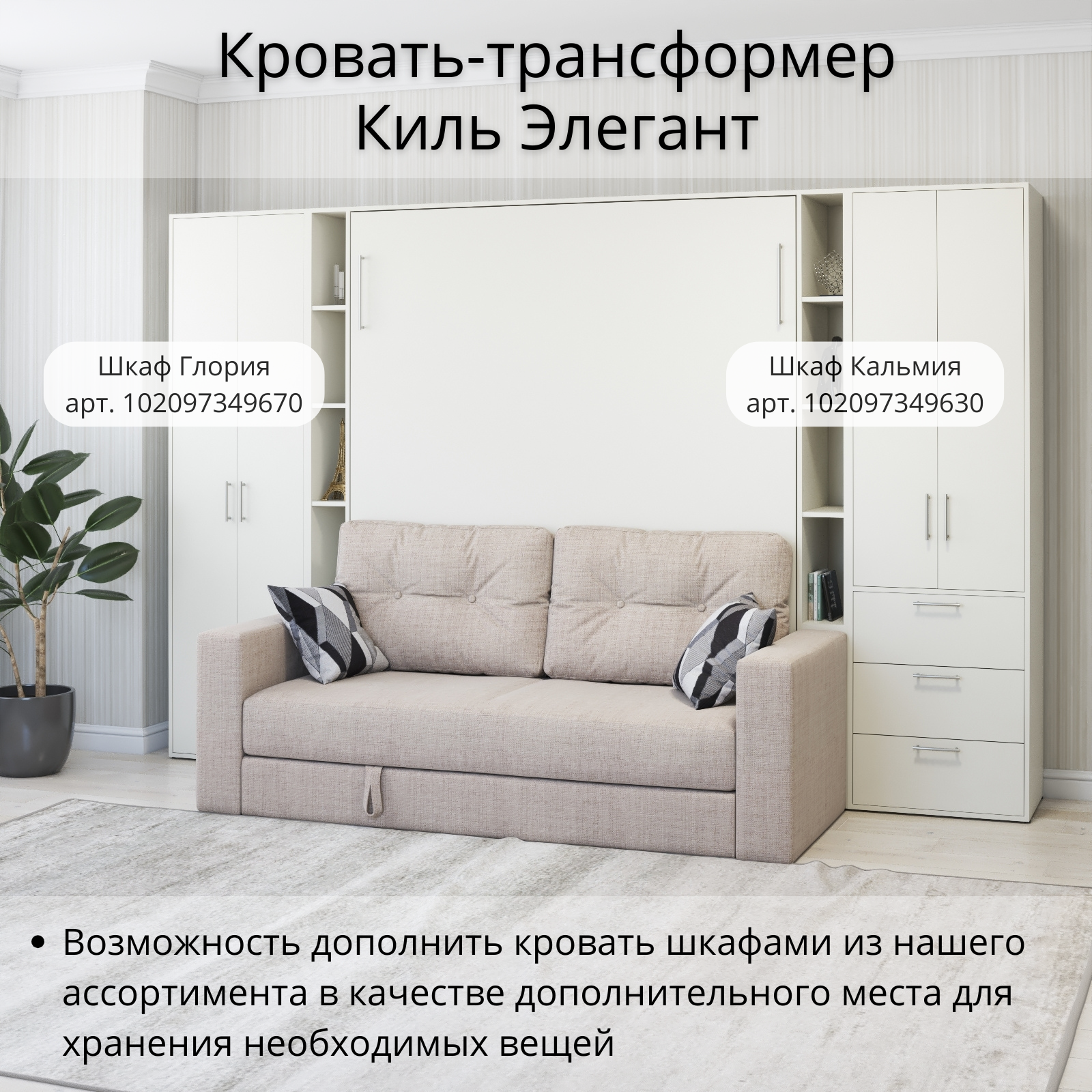 Шкаф кровать трансформер с креплением к стене, Stylint, Киль Элегант, 160х200, Белый информация: