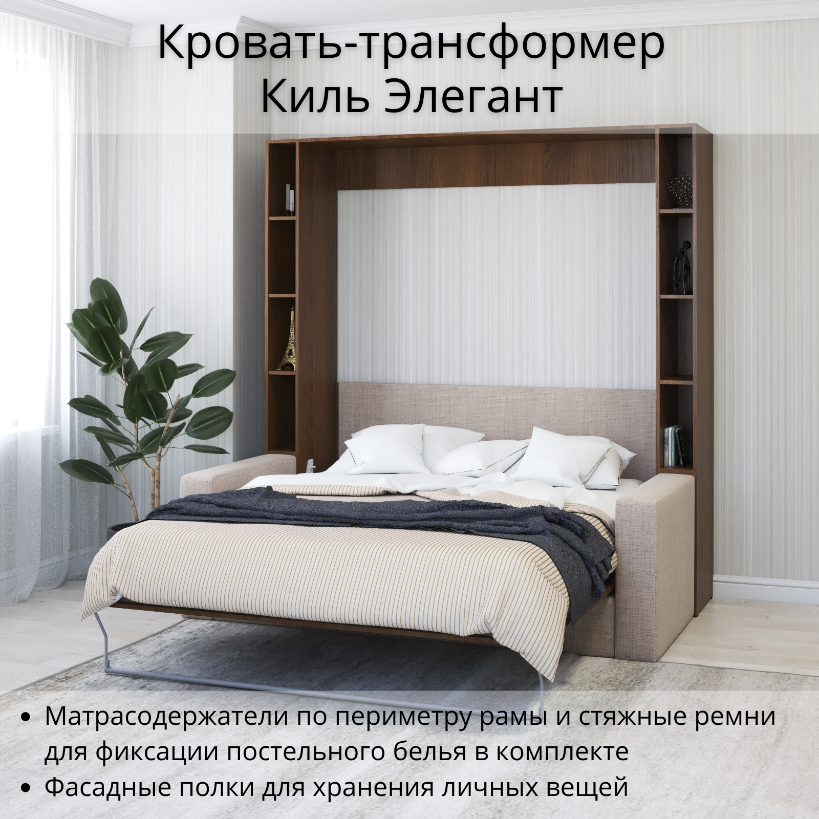 Шкаф кровать трансформер с креплением к стене, Stylint, Киль Элегант, 160х200, Орех экко информация: