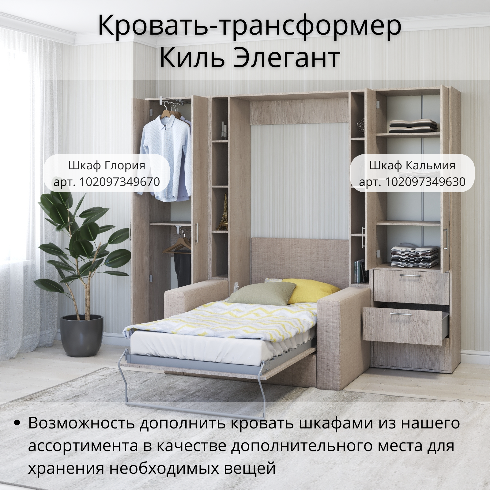 Шкаф кровать трансформер с креплением к стене, Stylint, Киль Элегант, 90х200, Ясень шимо информация: