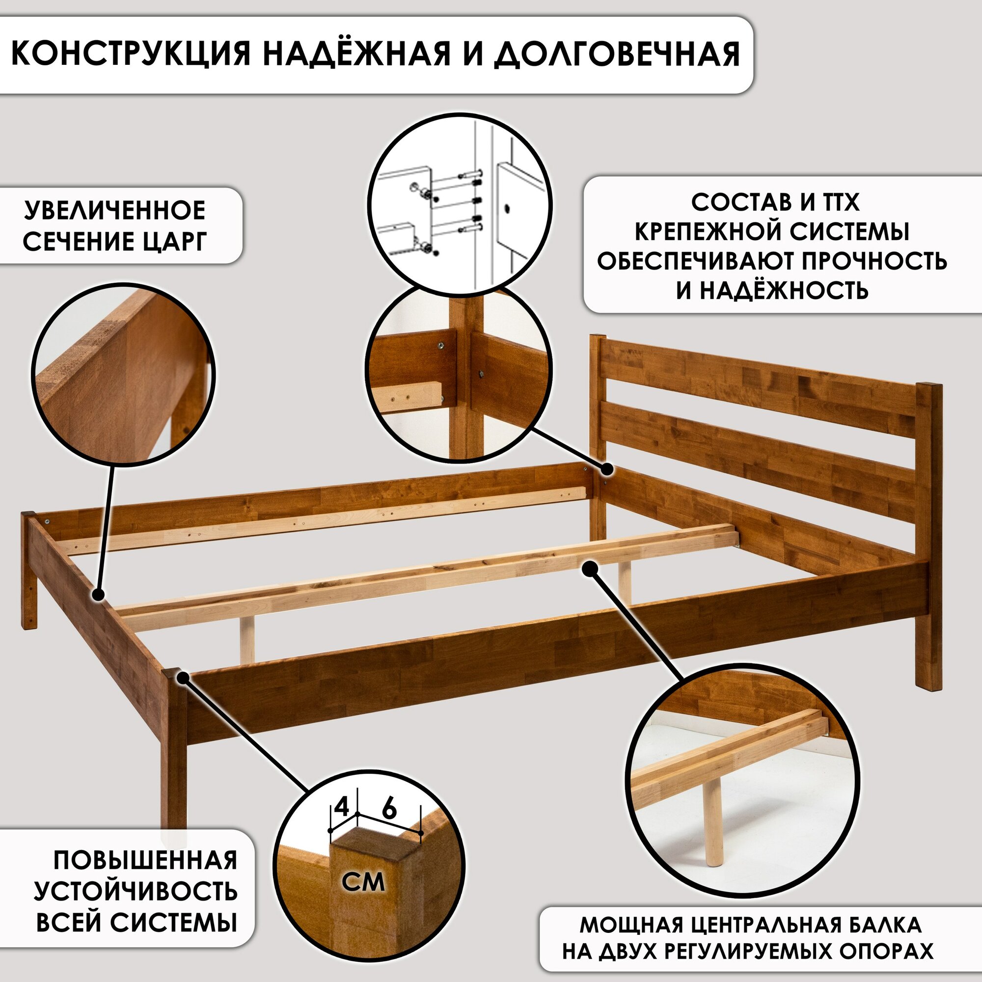 10 цен на Двуспальная кровать Агата из массива березы, 140 х 200 см, без настила, цвет дуб коньячный