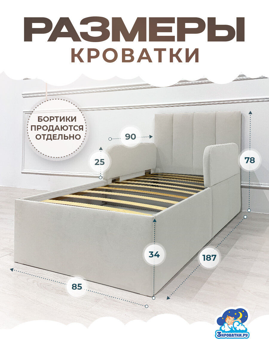 Кровать детская с бортиком кроватка софа подростковая 160 80 бежевый-лайт