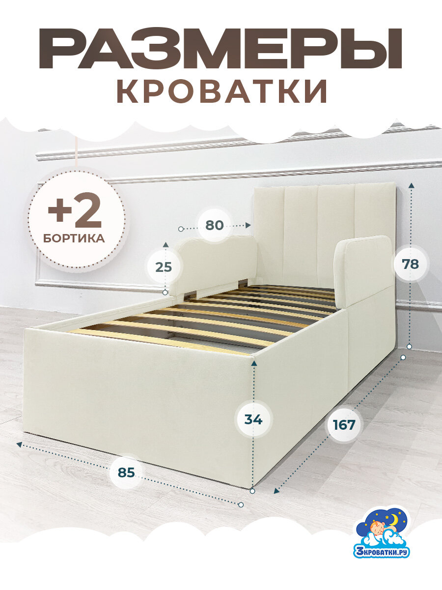 Кровать детская с бортиком кроватка софа подростковая 160 80 бежевый-лайт информация: