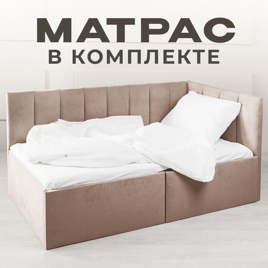 Кровать детская кроватка софа подростковая 160 80 бежевый Левое изголовье с Матрасом 30 000 ₽