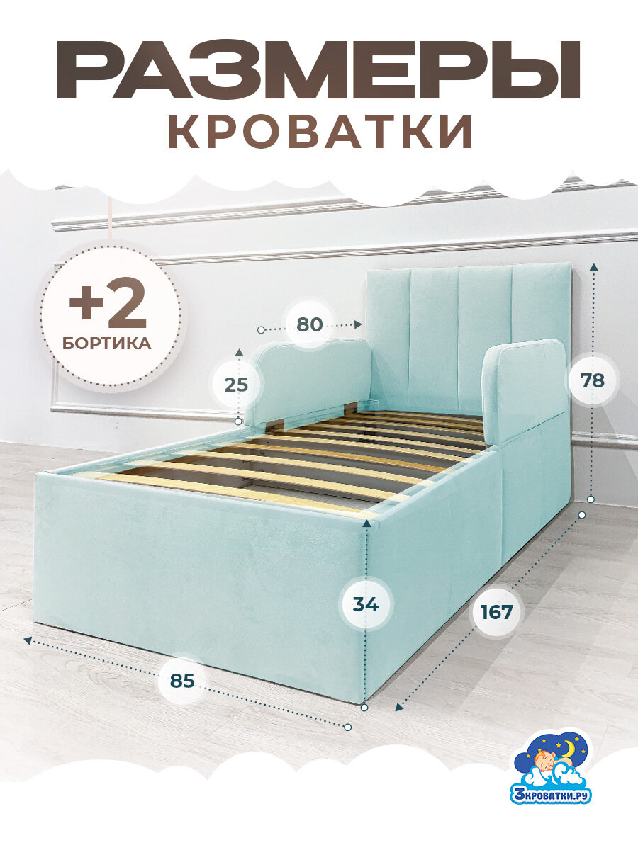 Кровать детская с бортиком кроватка софа подростковая 160 80 небесно голубой