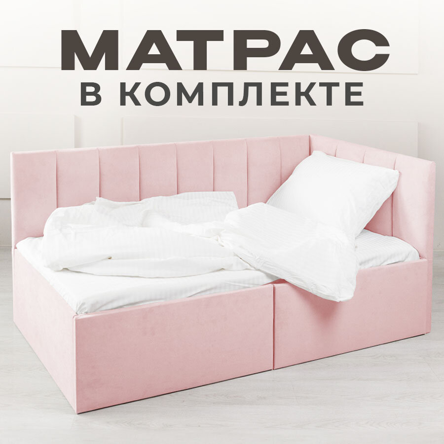 Кровать детская кроватка софа подростковая 180 90 пудровый Левое изголовье с матрасом 32 000 ₽
