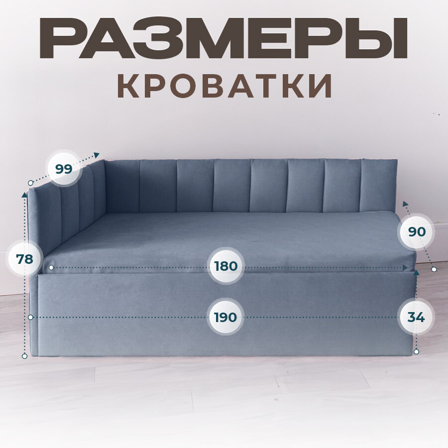 Отзывы на Кровать детская кроватка софа подростковая 200 90 серо-синий Левое изголовье с Матрасом