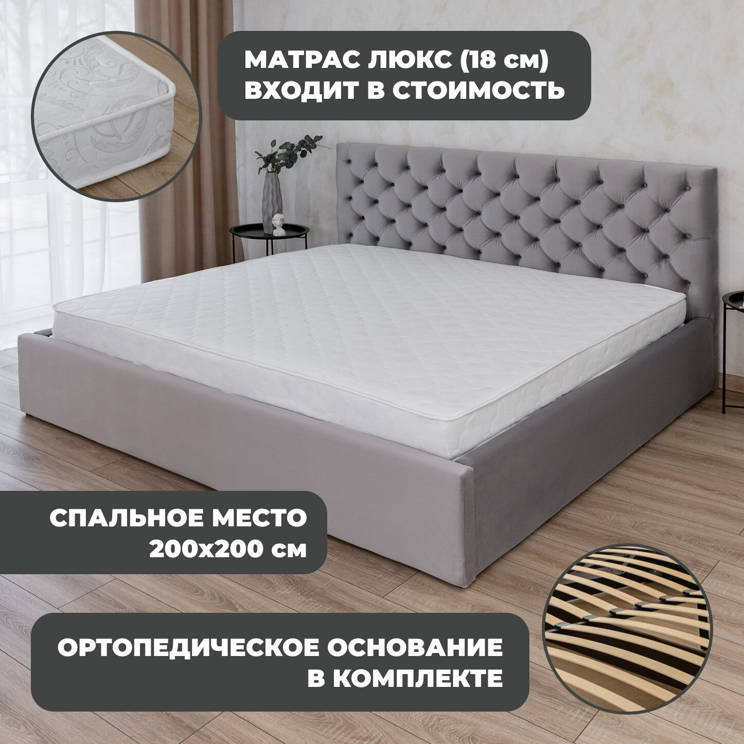 10 цен на Двуспальная кровать Барокко Серая с матрасом Люкс (18 см), 200х200 см