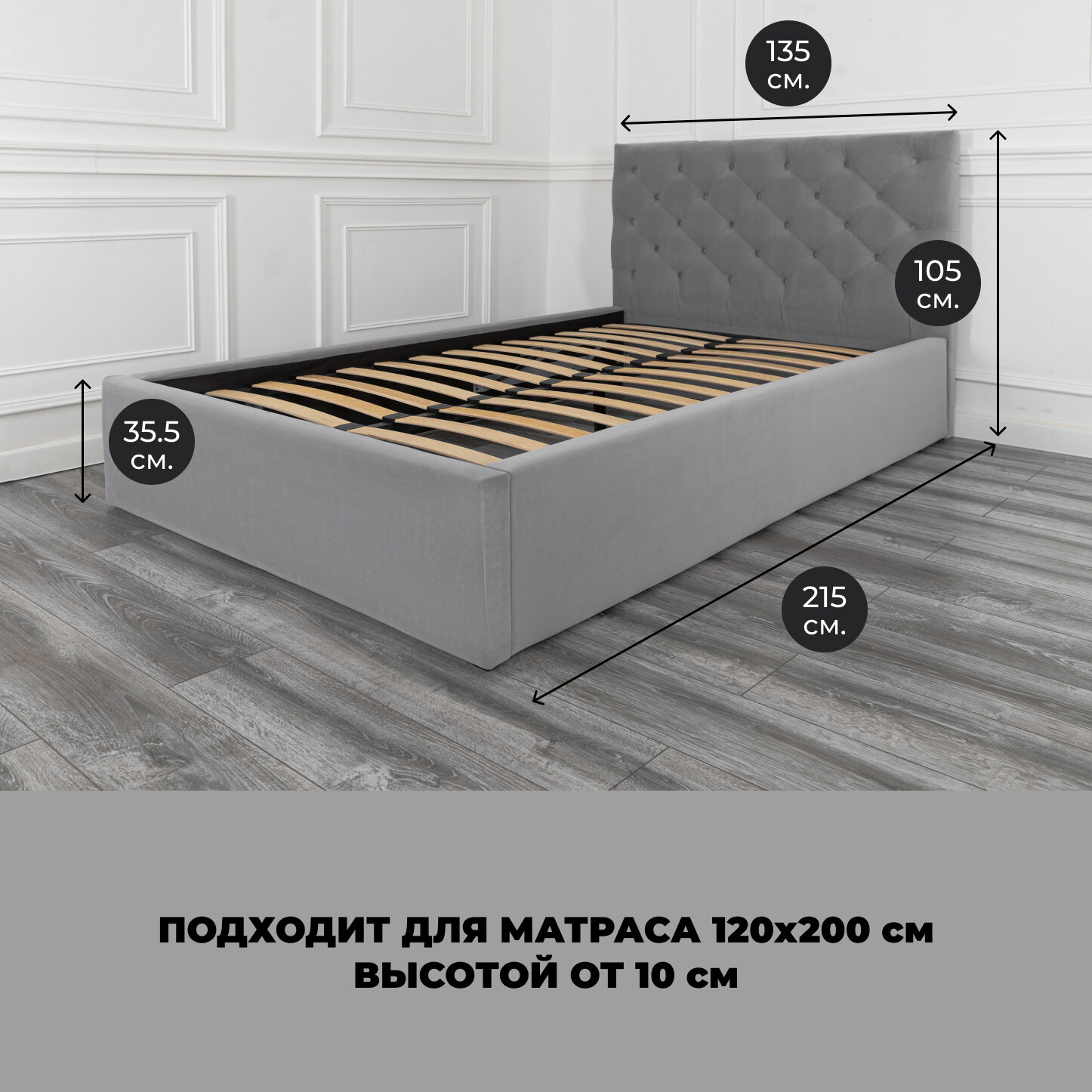 Полутороспальная кровать Барокко Серая с матрасом Люкс (18 см), 120х200 см информация: