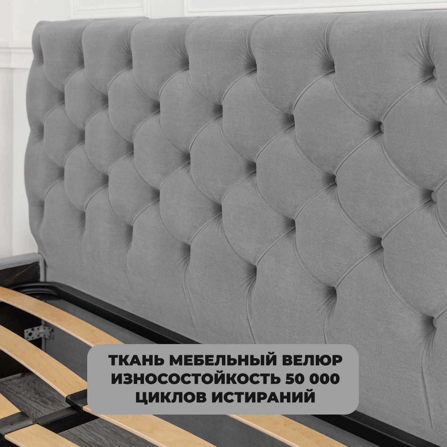 Двуспальная кровать Барокко Серая с матрасом Люкс (18 см), 160х200 см информация: