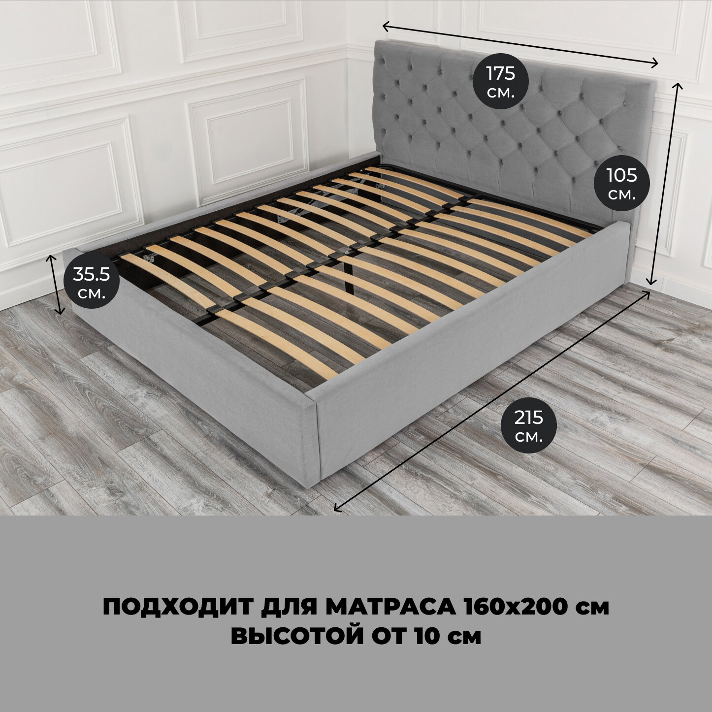 10 цен на Двуспальная кровать Барокко Серая с матрасом Люкс (18 см), 160х200 см