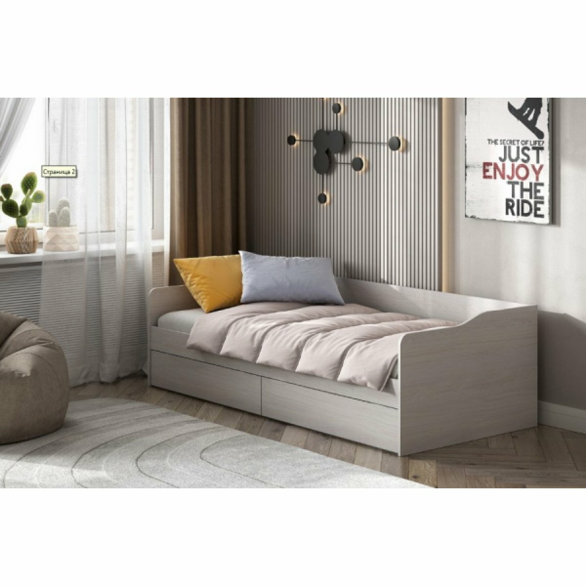 БРВ-Мебель Кровать односпальная с ящиком шириной 90 см Индиана JLOZ1S 90 дуб саттер