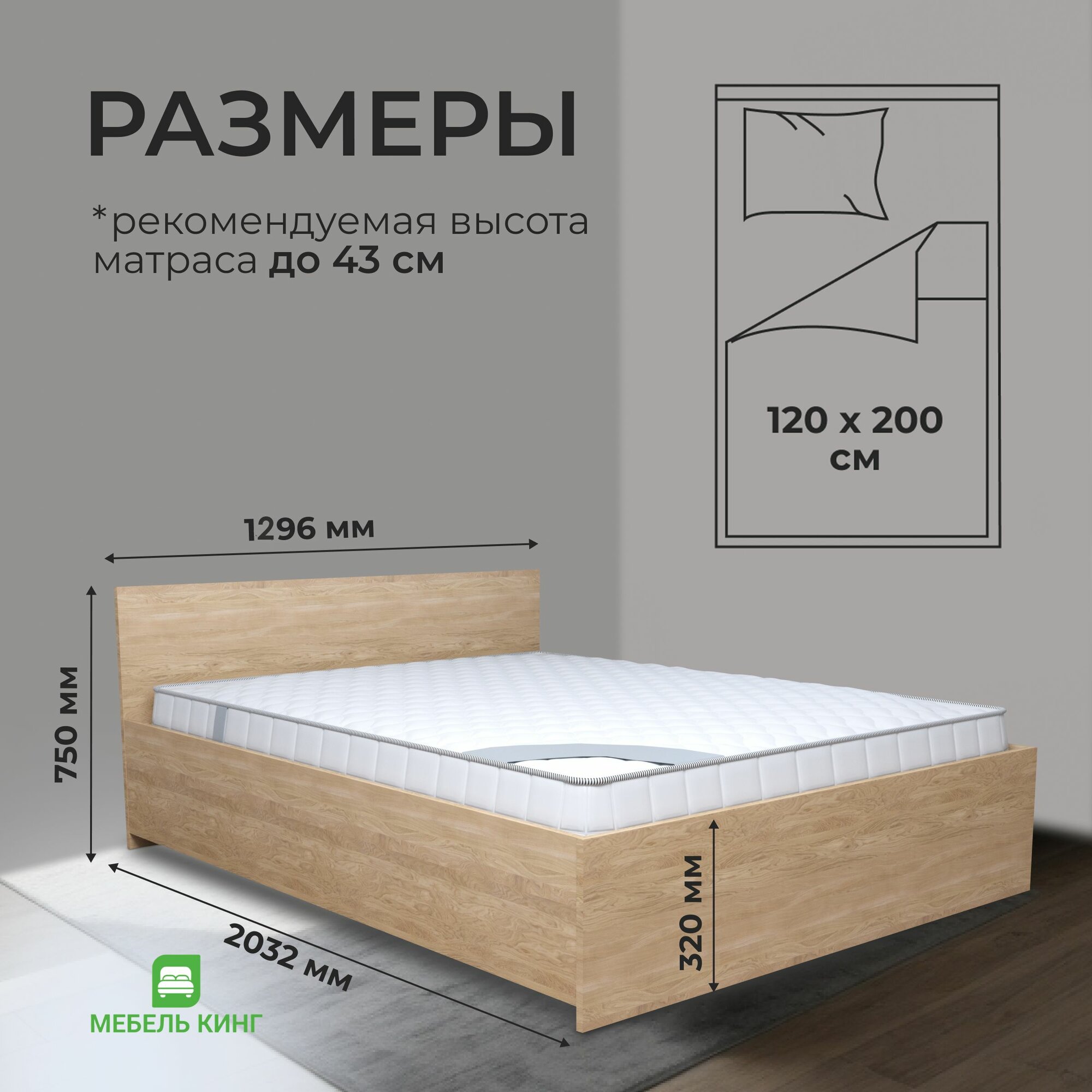 Двуспальная кровать 120х200 Амелина с ортопедическим матрасом, независимый пружинный блок, дуб сонома информация: