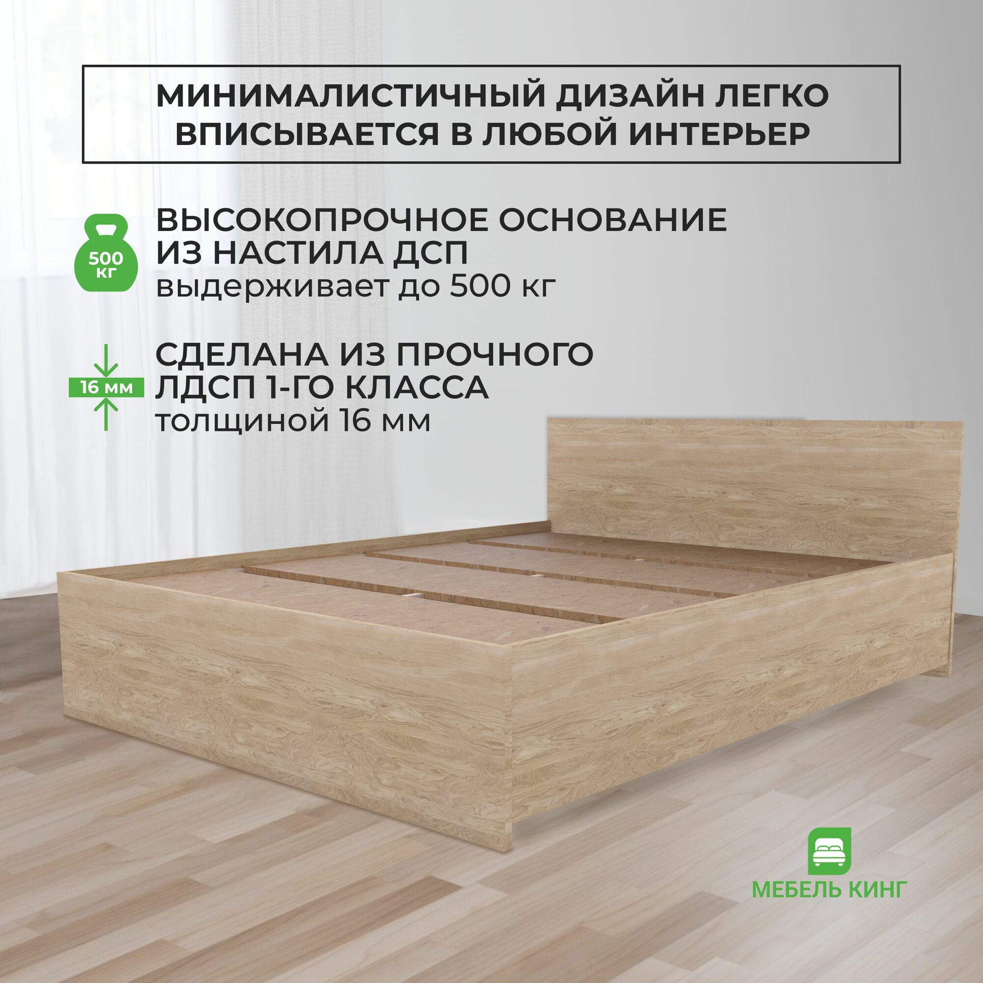 Двуспальная кровать 140х200 Амелина с ортопедическим матрасом, независимый пружинный блок, дуб сонома 20 299 ₽