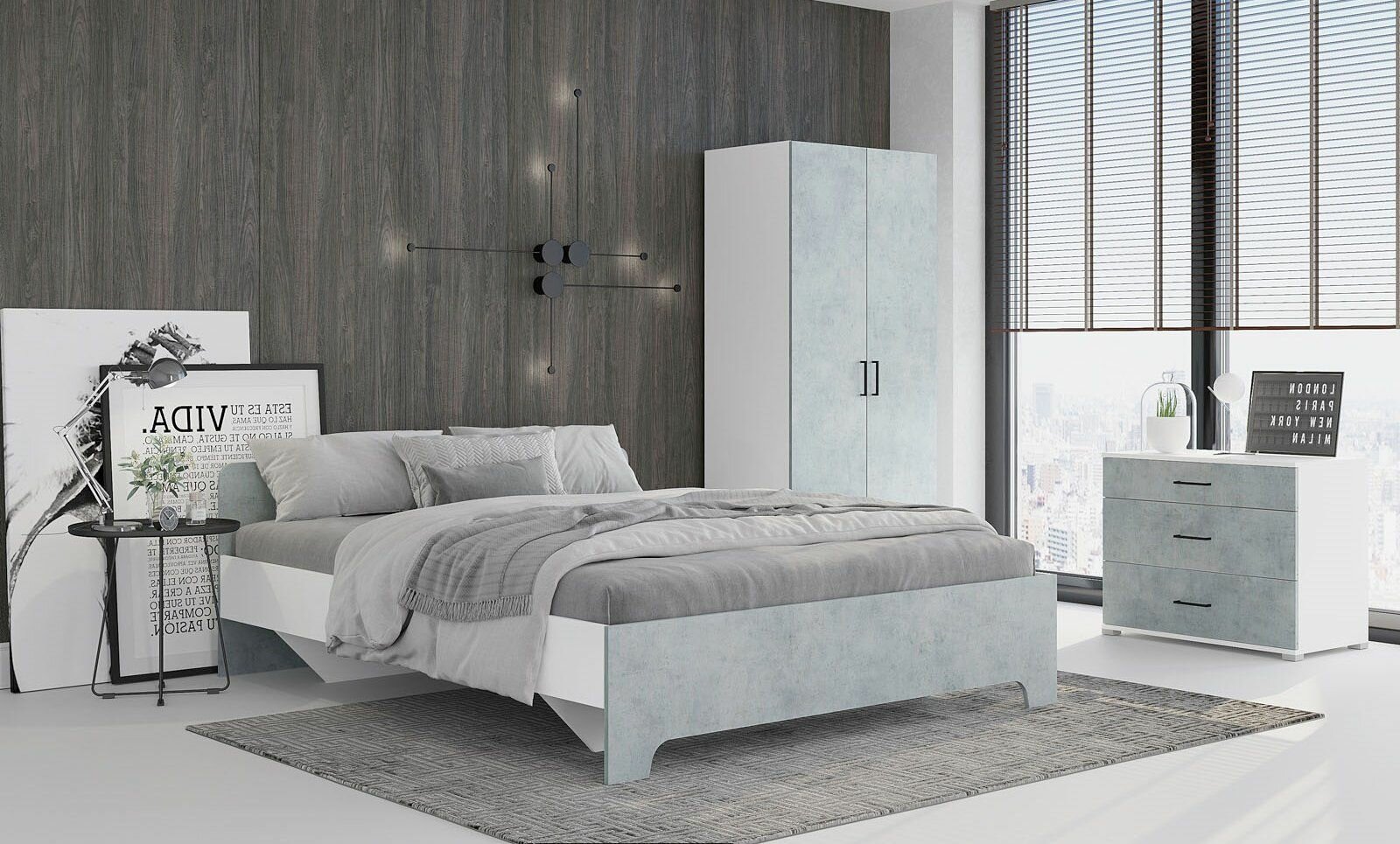 10 цен на Кровать "Victor" Белый / Бетон