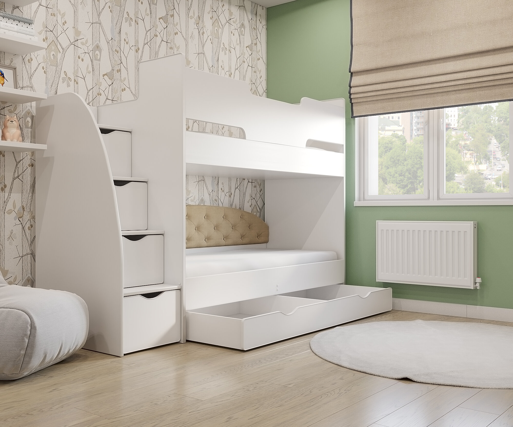 Matrix кровать детская двухъярусная с мягкой спинкой "Junior 13" лестница справа