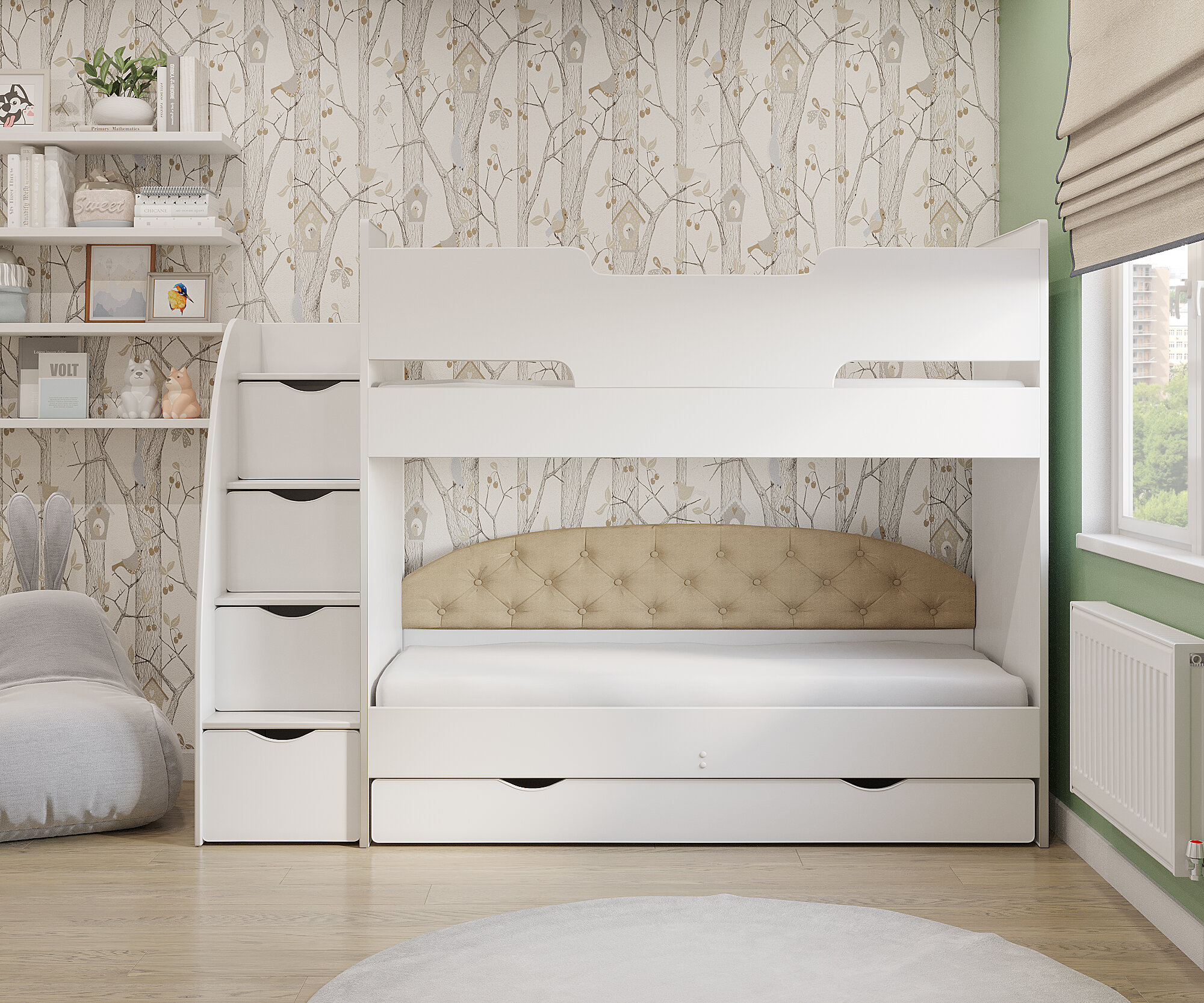 Matrix кровать детская двухъярусная с мягкой спинкой "Junior 13" бежевый, лестница справа 31 558 ₽