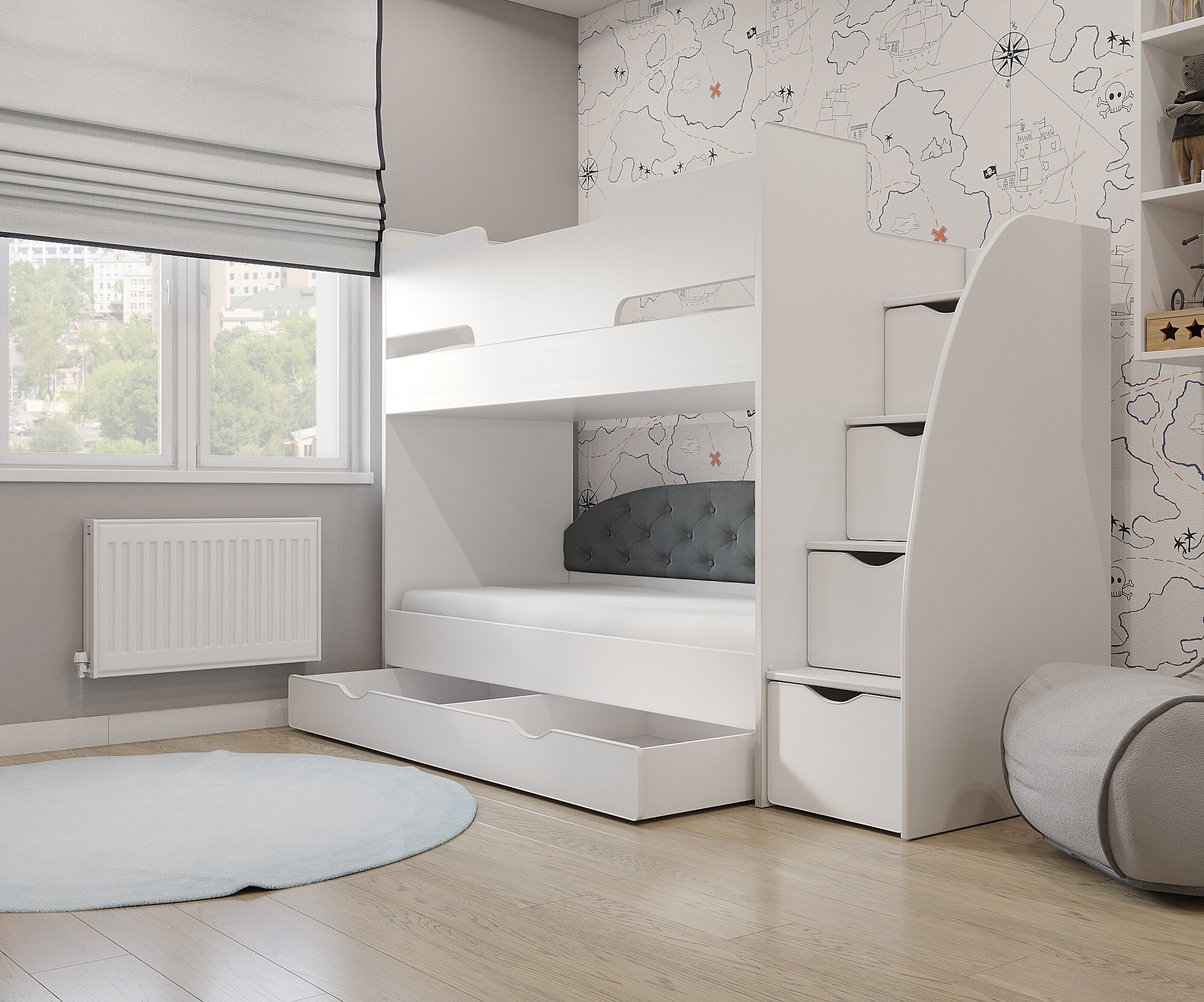 Matrix кровать детская двухъярусная "Junior 9" цвет белый, лестница слева