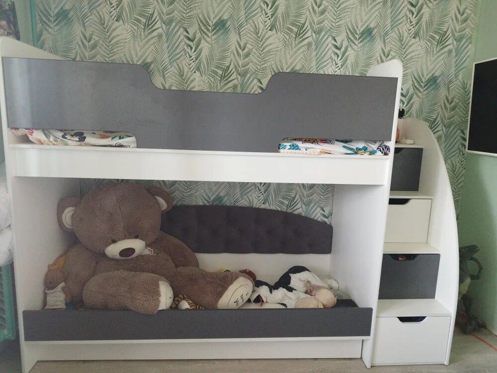 Отзывы на Matrix кровать детская двухъярусная с мягкой спинкой "Junior 13" лестница справа