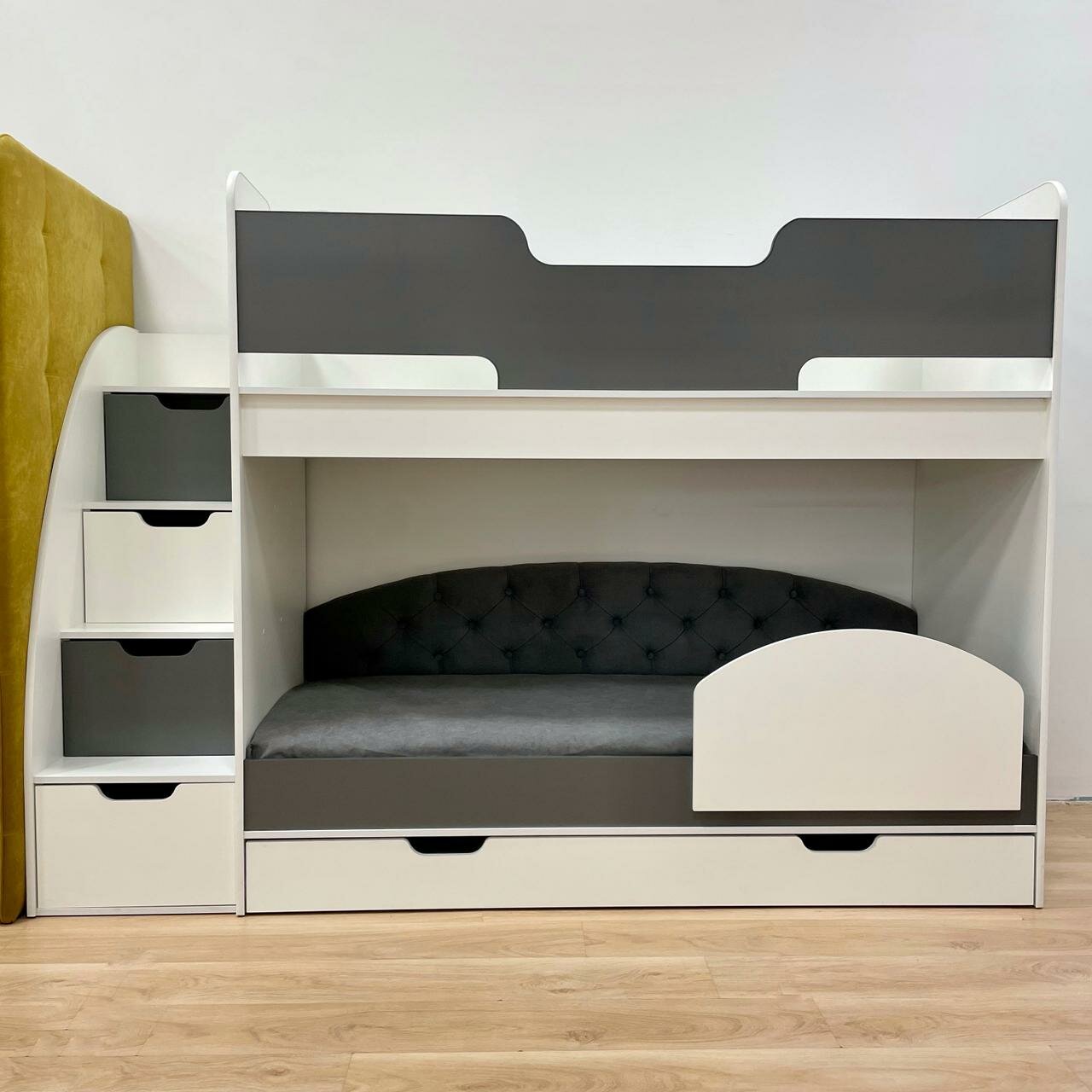 Matrix кровать детская двухъярусная с мягкой спинкой "Junior 13" белый/графит, лестница справа 32 203 ₽