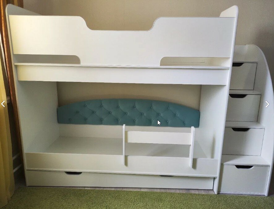 | Особенности | для детей, мягкое изголовье, с лестницей, с тумбой, с ящиком для белья |