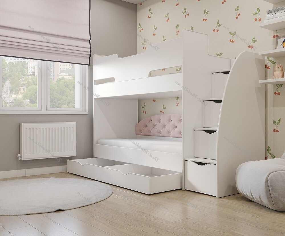 | Особенности | для детей, мягкое изголовье, с лестницей, с тумбой, с ящиком для белья |