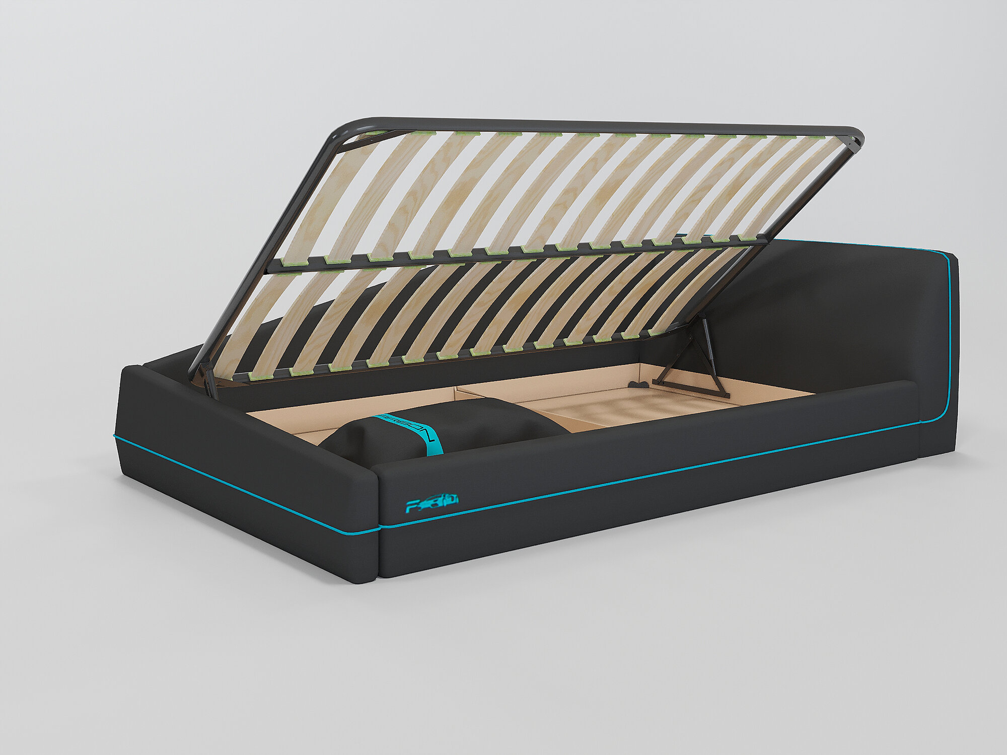 Фабрика Мирлачёва Кровать CARBON 90х190, реечное основание с подъемным механизмом, изголовье слева, кант бирюза 28 141 ₽