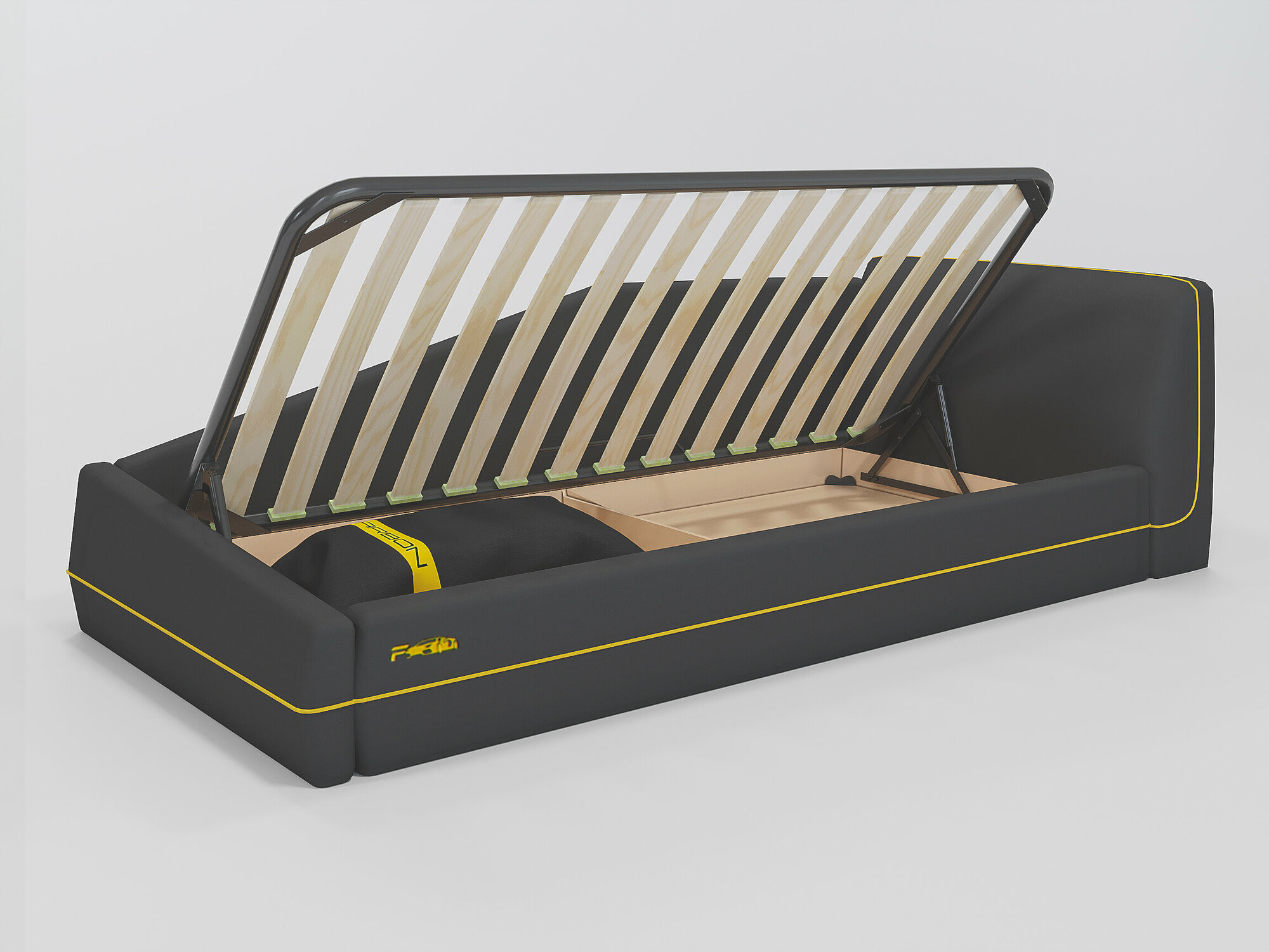 Фабрика Мирлачёва Кровать CARBON 90х190, реечное основание с подъемным механизмом , изголовье справа, кант желтый 29 200 ₽