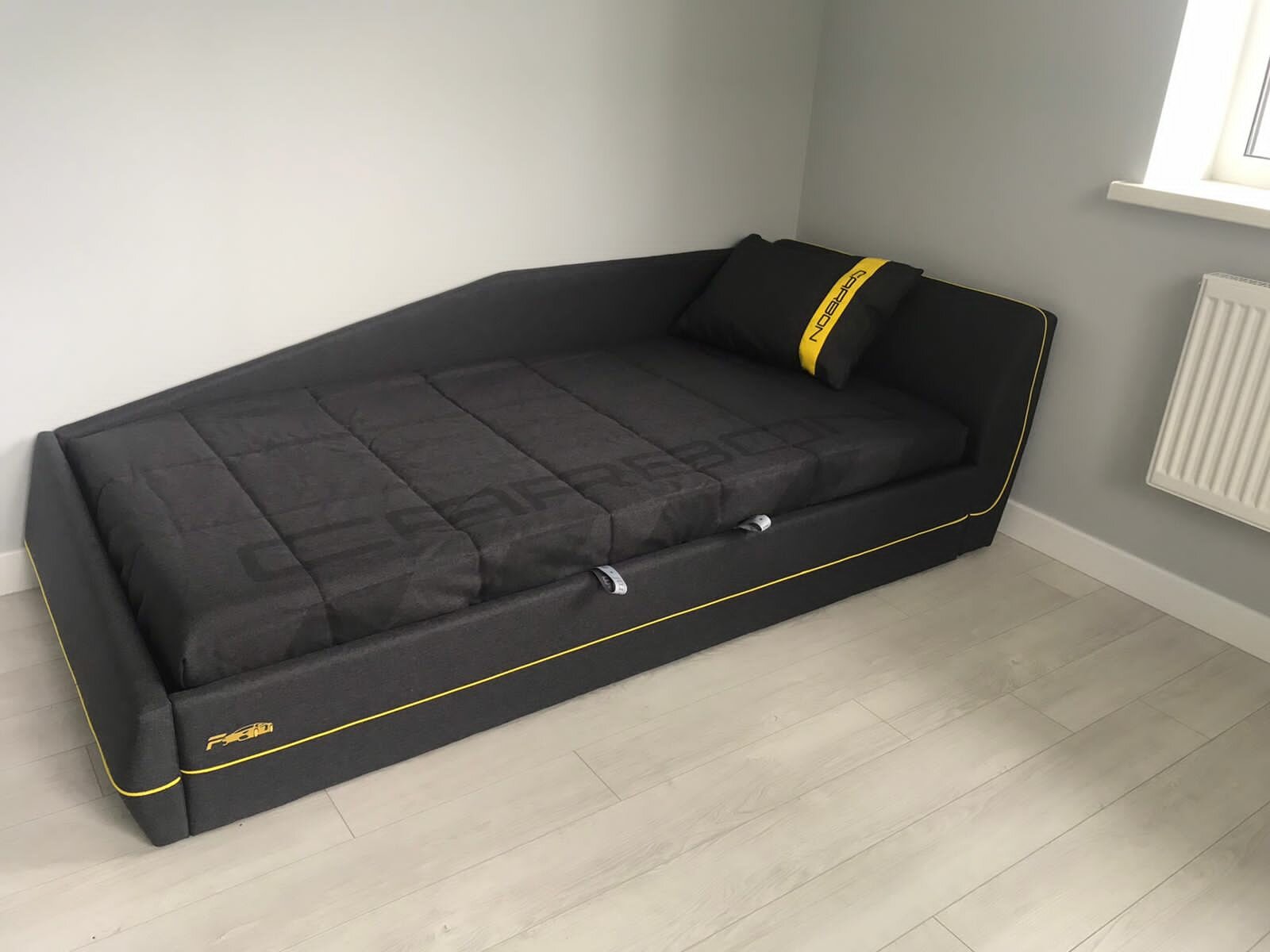 Фабрика Мирлачёва Кровать CARBON 90х190, реечное основание с подъемным механизмом , изголовье слева, кант желтый информация: