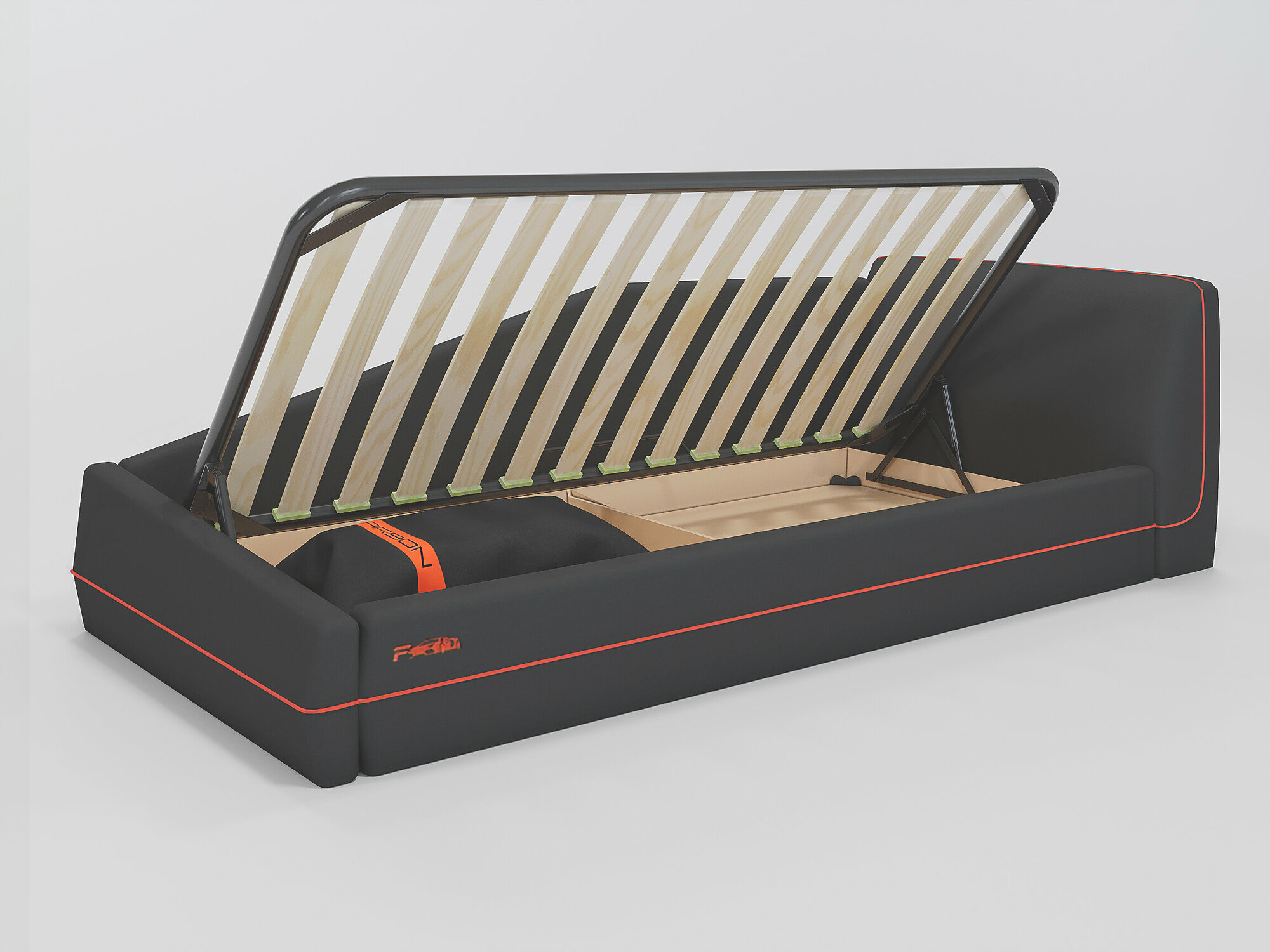 Фабрика Мирлачёва Кровать CARBON 90х190, реечное основание с подъемным механизмом , изголовье справа, кант красный 29 200 ₽