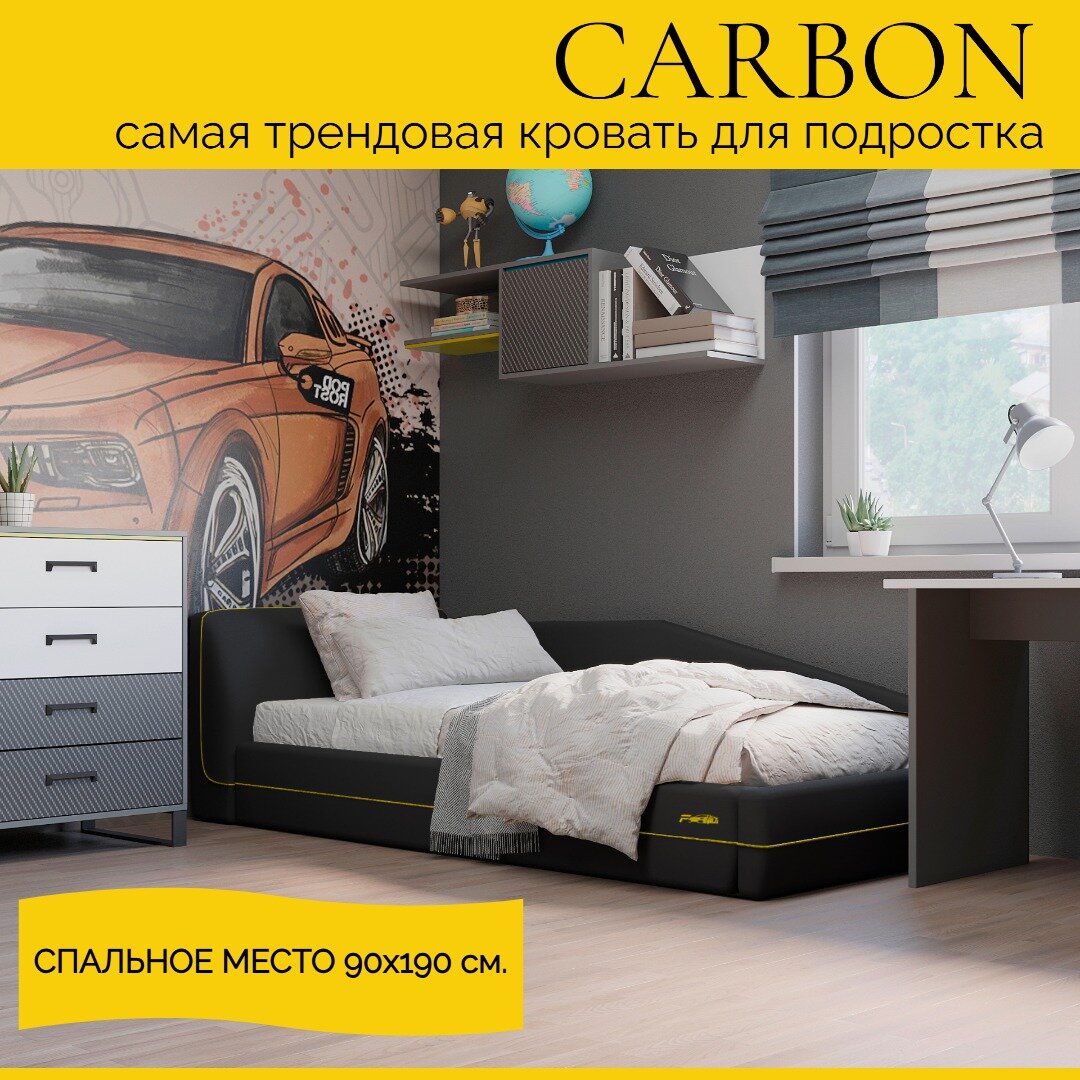 10 цен на Фабрика Мирлачёва Кровать CARBON 90х190, реечное основание с подъемным механизмом , изголовье справа, кант желтый