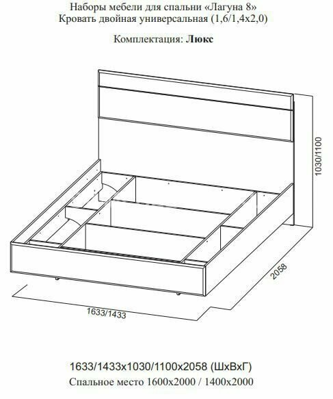 Кровать двойная универсальная "Лагуна 8" (Люкс) 1,4 информация: