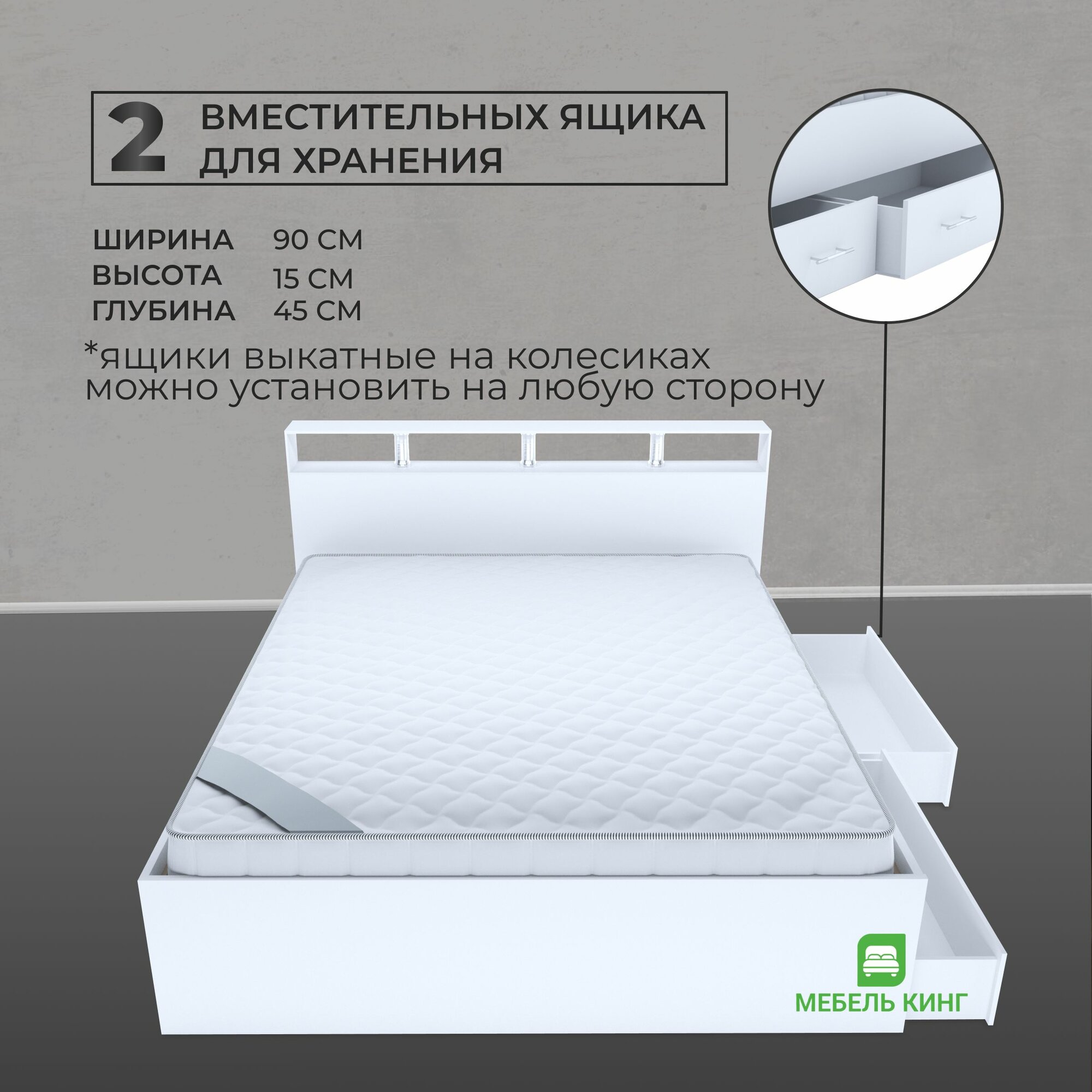 Односпальная кровать Саломея с ящиками 90х200, белая, Мебель Кинг 11 777 ₽