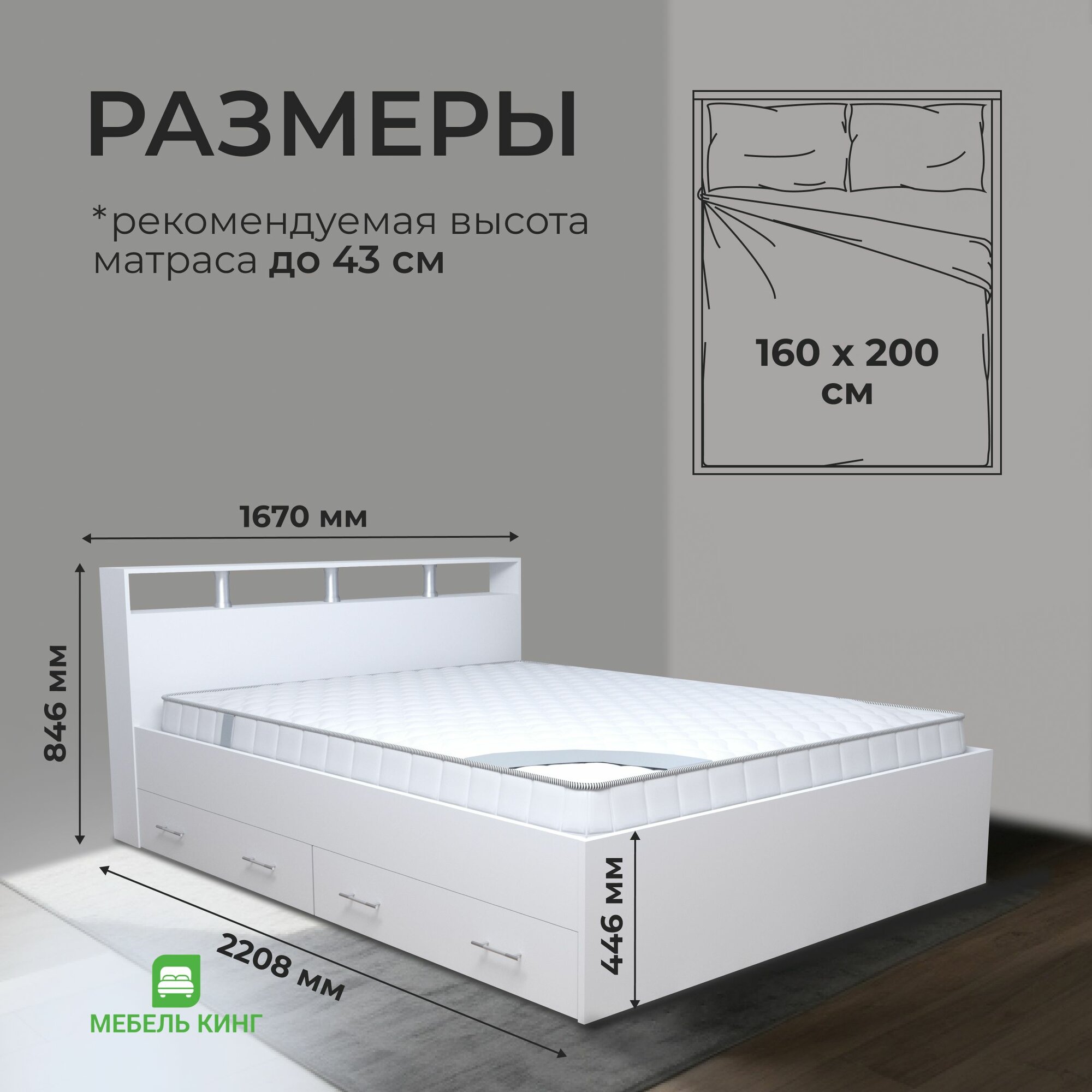 Отзывы на Двуспальная кровать Саломея с ящиками 160х200, белая, Мебель Кинг