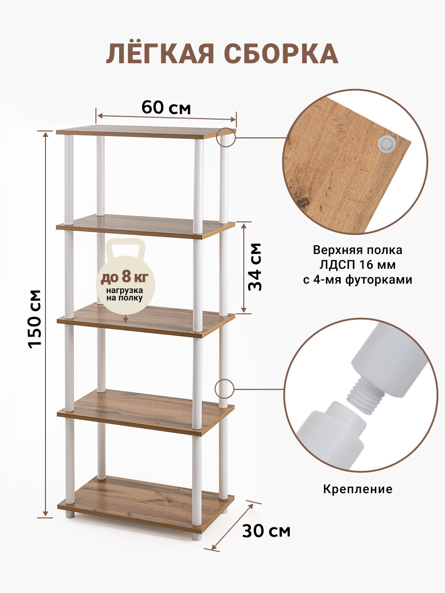 10 цен на Стеллаж деревянный GASTRORAG 1450/5, Этажерка напольная, полка ЛДСП размеры 60 х 30 х 148.5 см