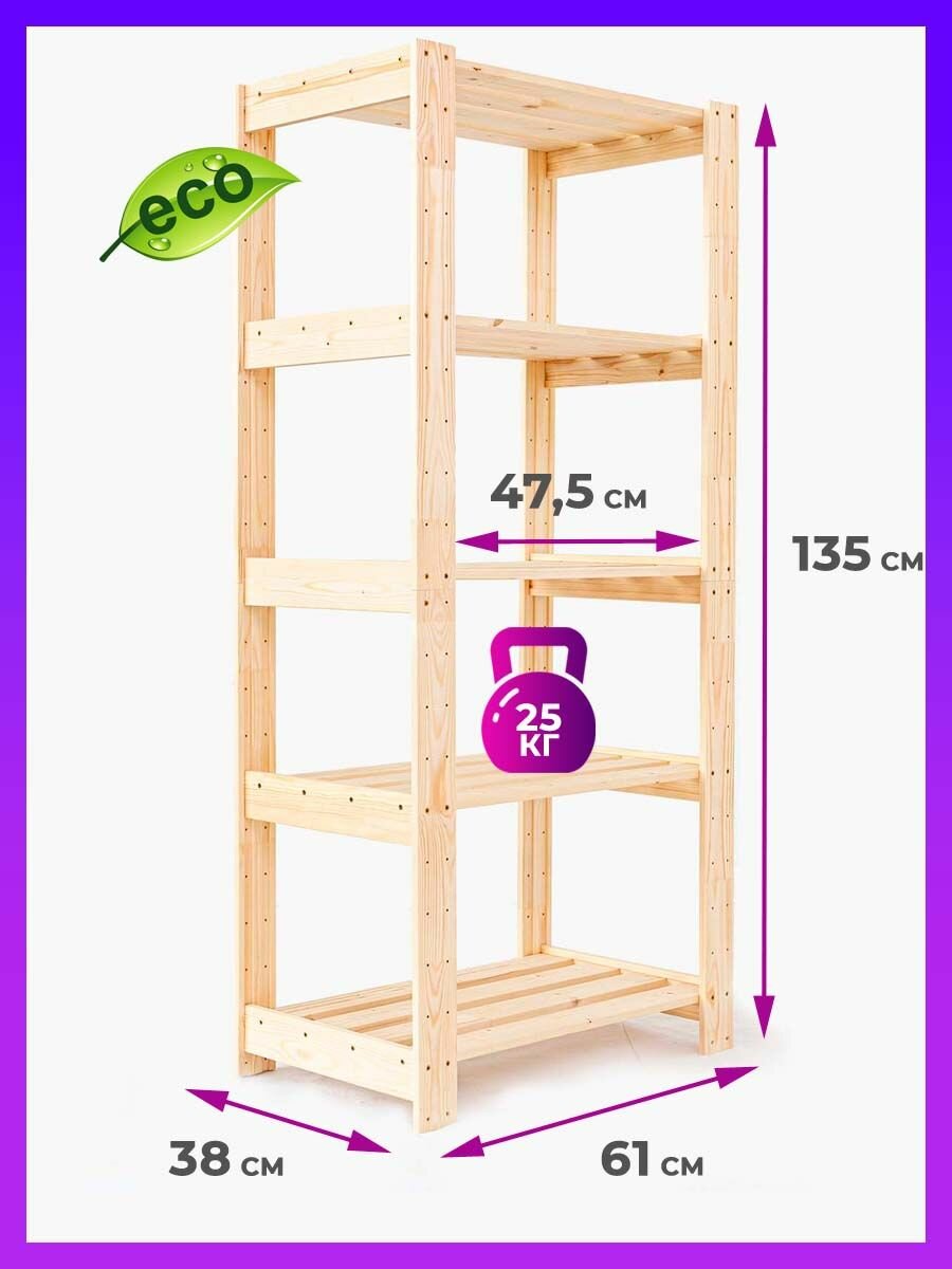 10 цен на Стеллаж деревянный, 5 полочный Lesovik