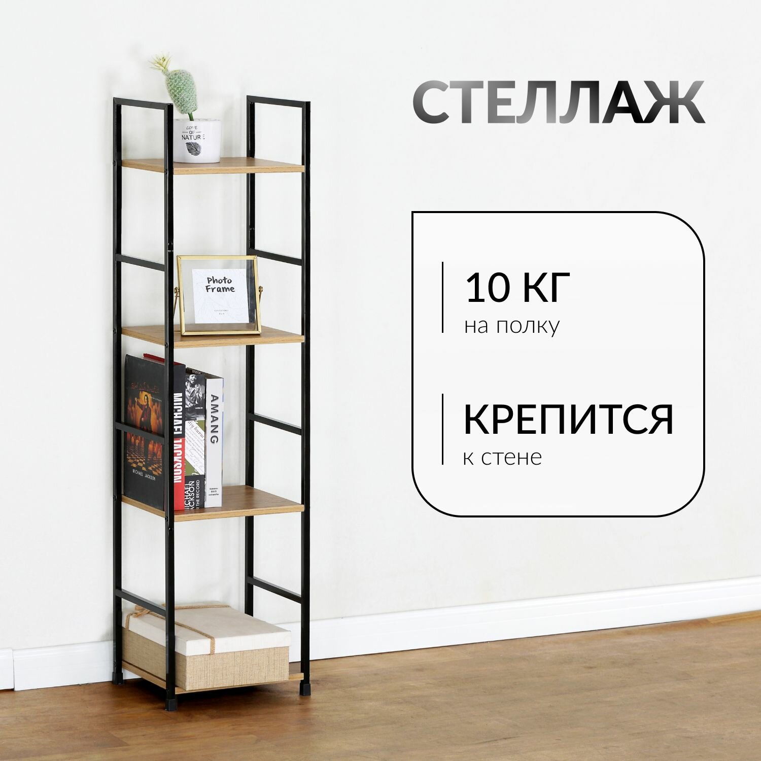 Стеллаж узкий Вудми, 4 полки, Дикий дуб информация:
