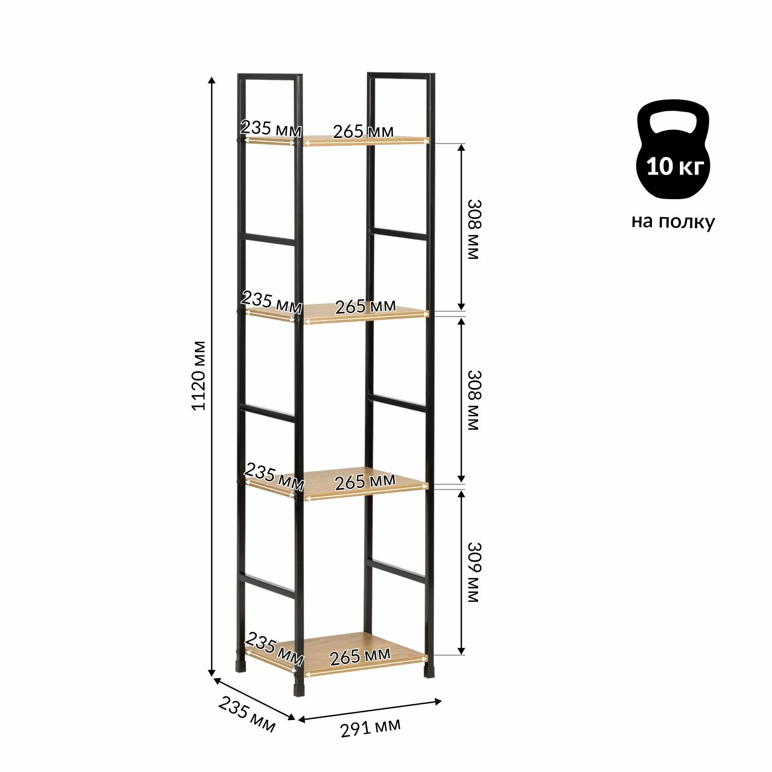 | Максимальная нагрузка на полку | 10 кг |