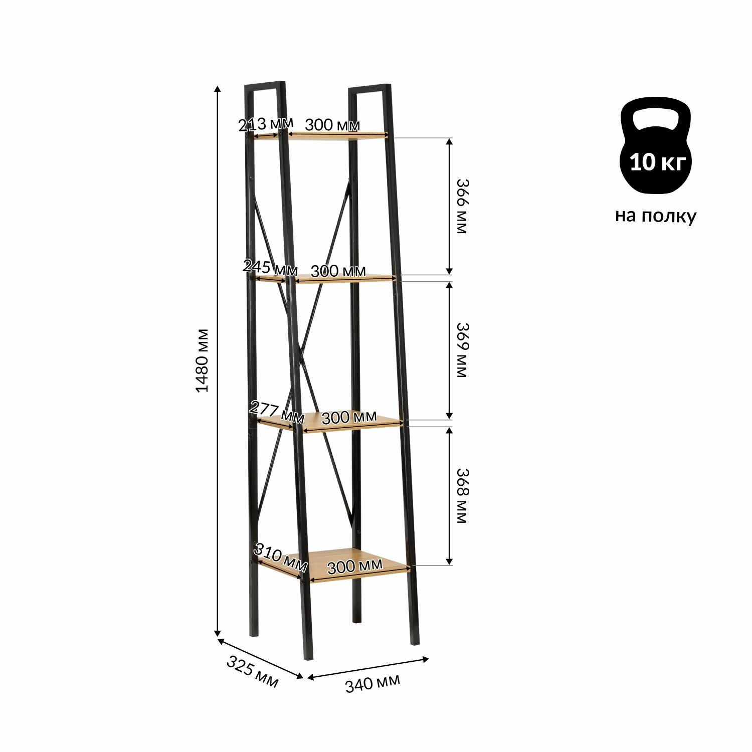 | Максимальная нагрузка на полку | 10 кг |