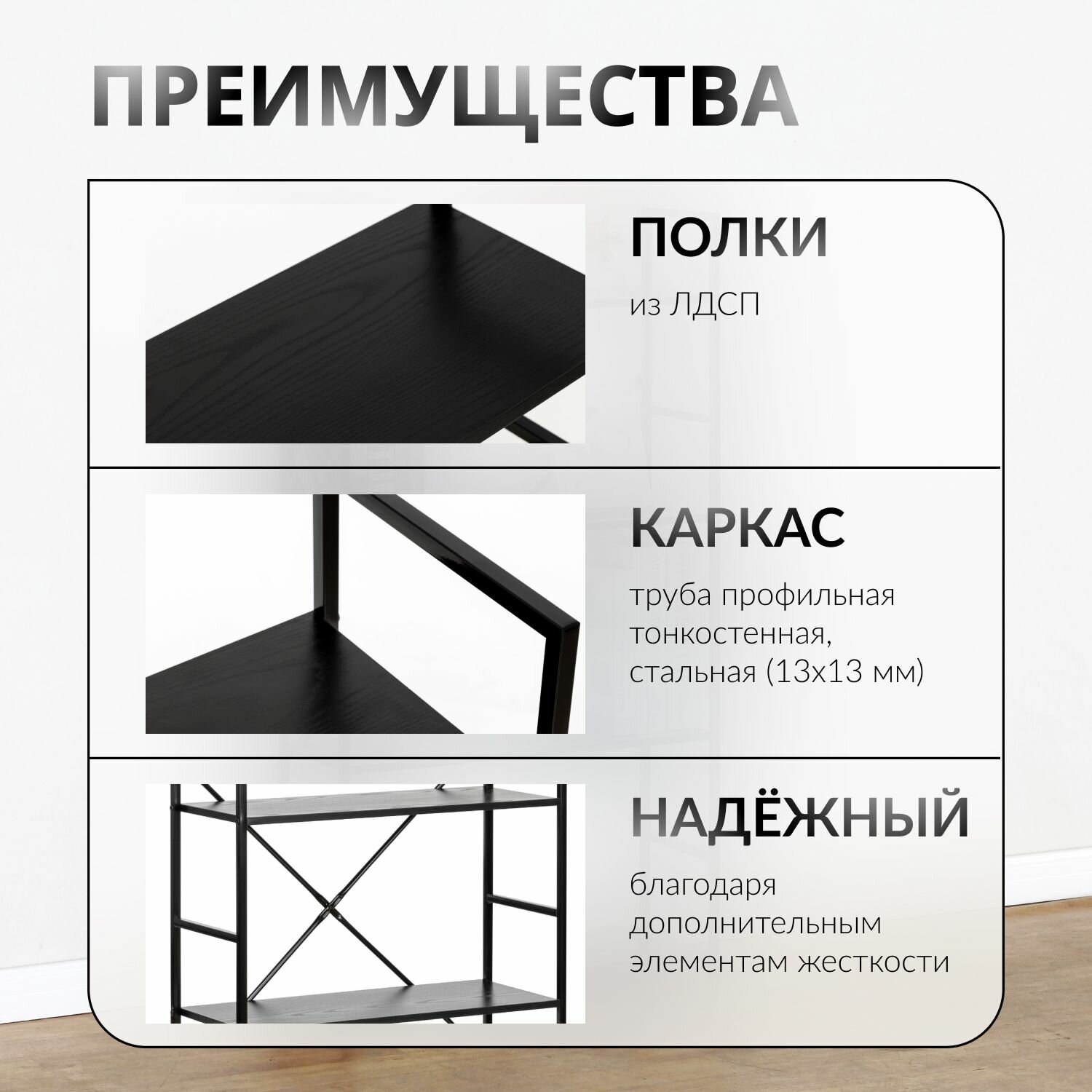 Стеллаж широкий Вудми, 4 полки, Черный дуб информация:
