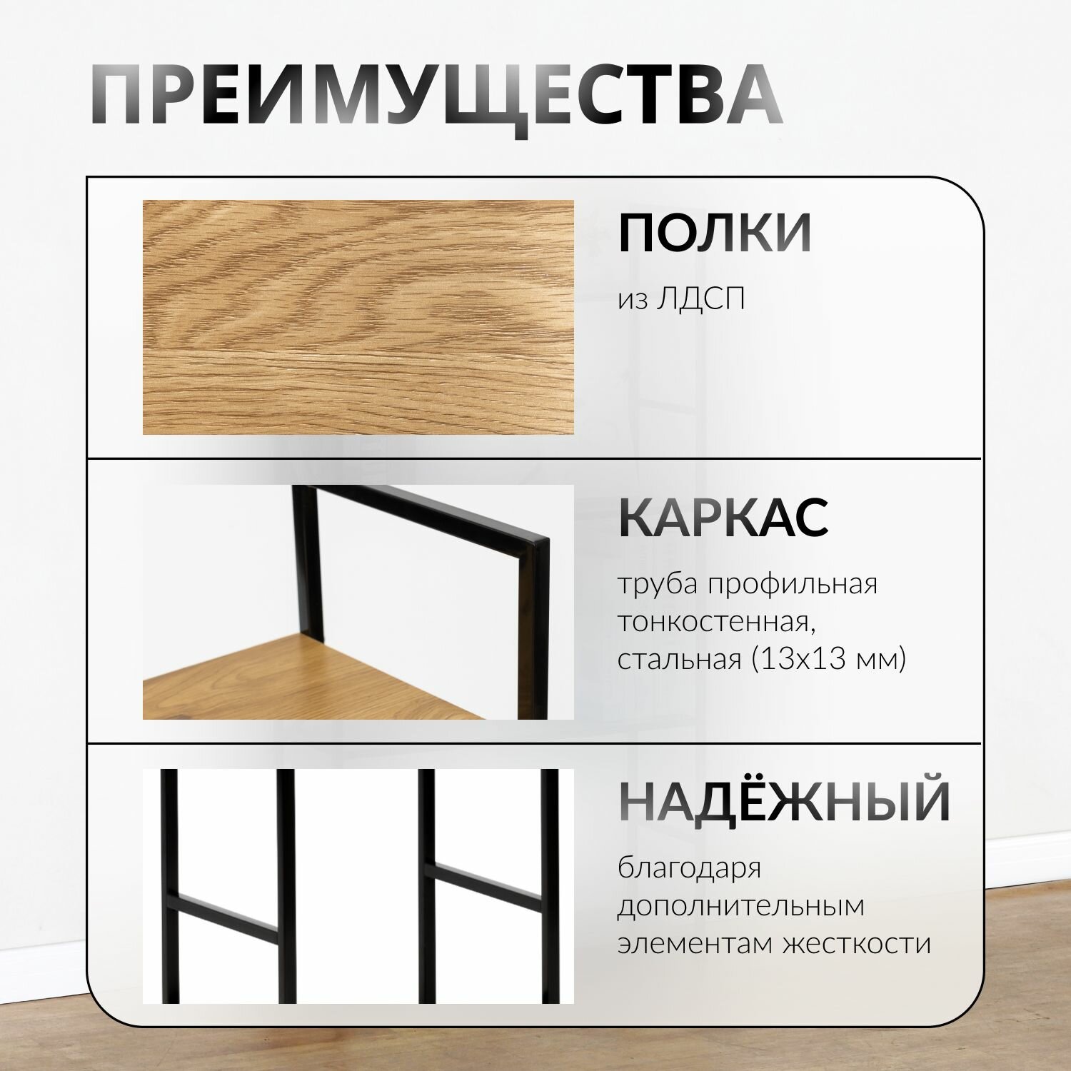 Стеллаж Айсберг Лофт 40/6 / Черный/ с полками дуб крафт табак/ Для дачи/ для дома/ для книг/ в офис