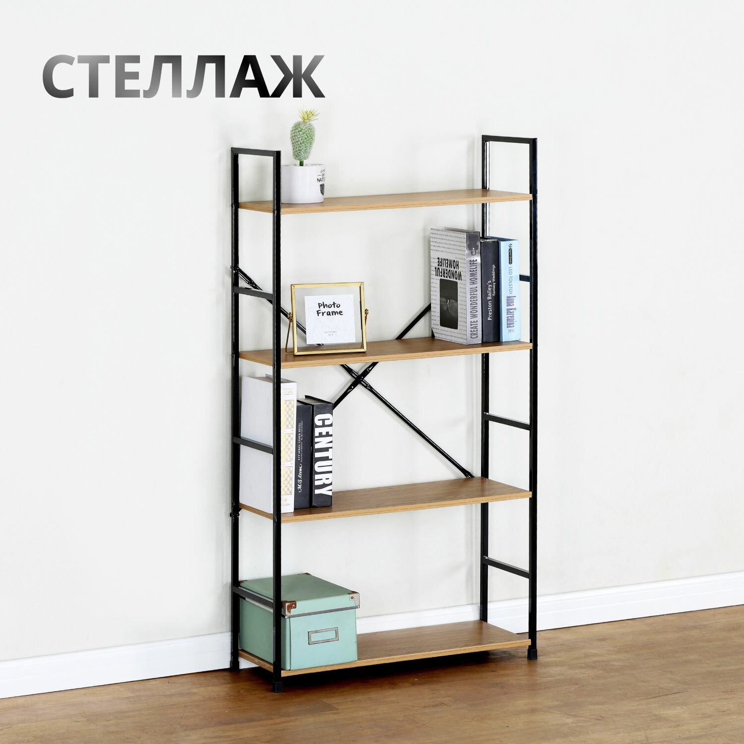 Стеллаж широкий Вудми, 4 полки, Дикий дуб информация: