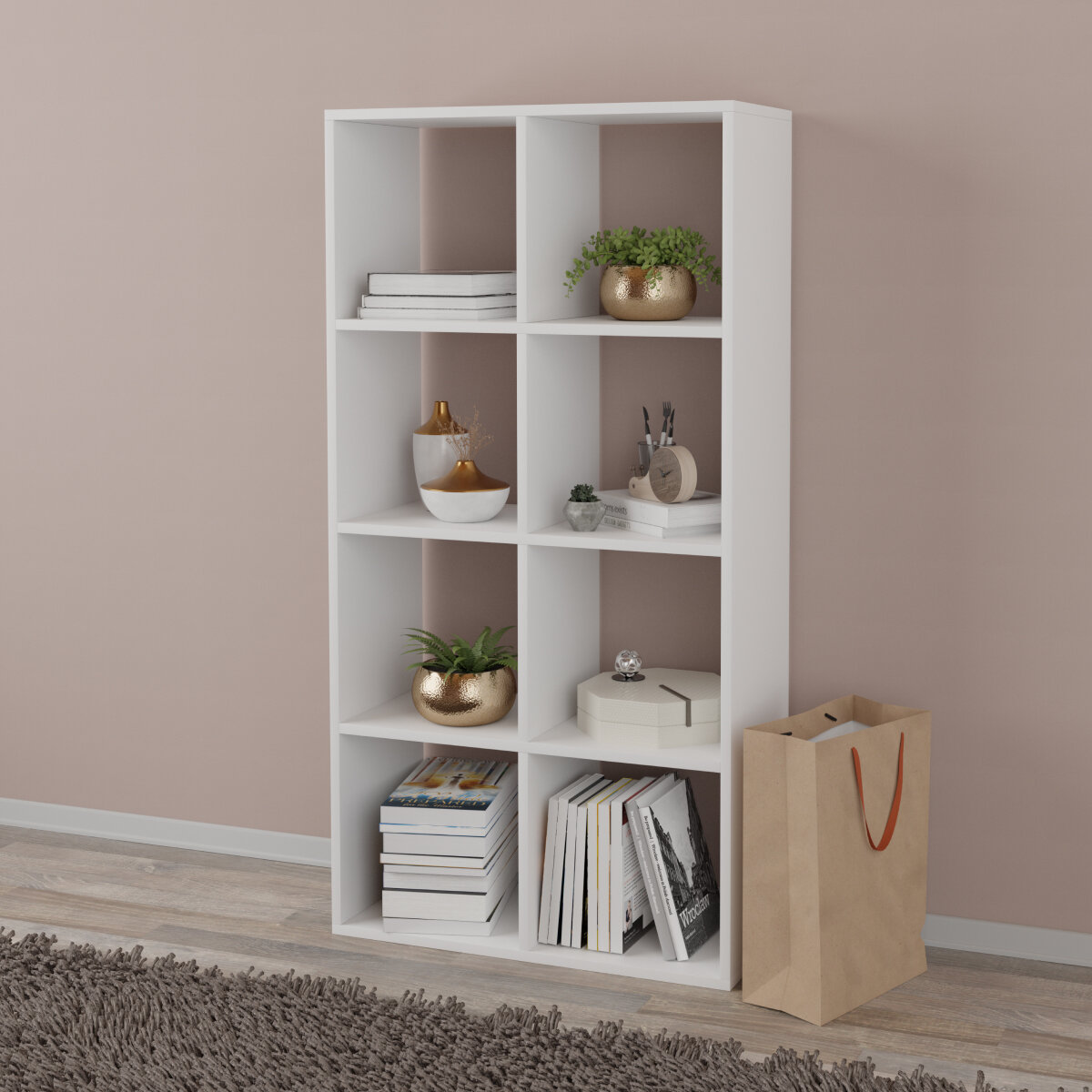 10 цен на Стеллаж белый Фридлев для книг и игрушек, ЛДСП собственного производства, 8 секций, LIVA