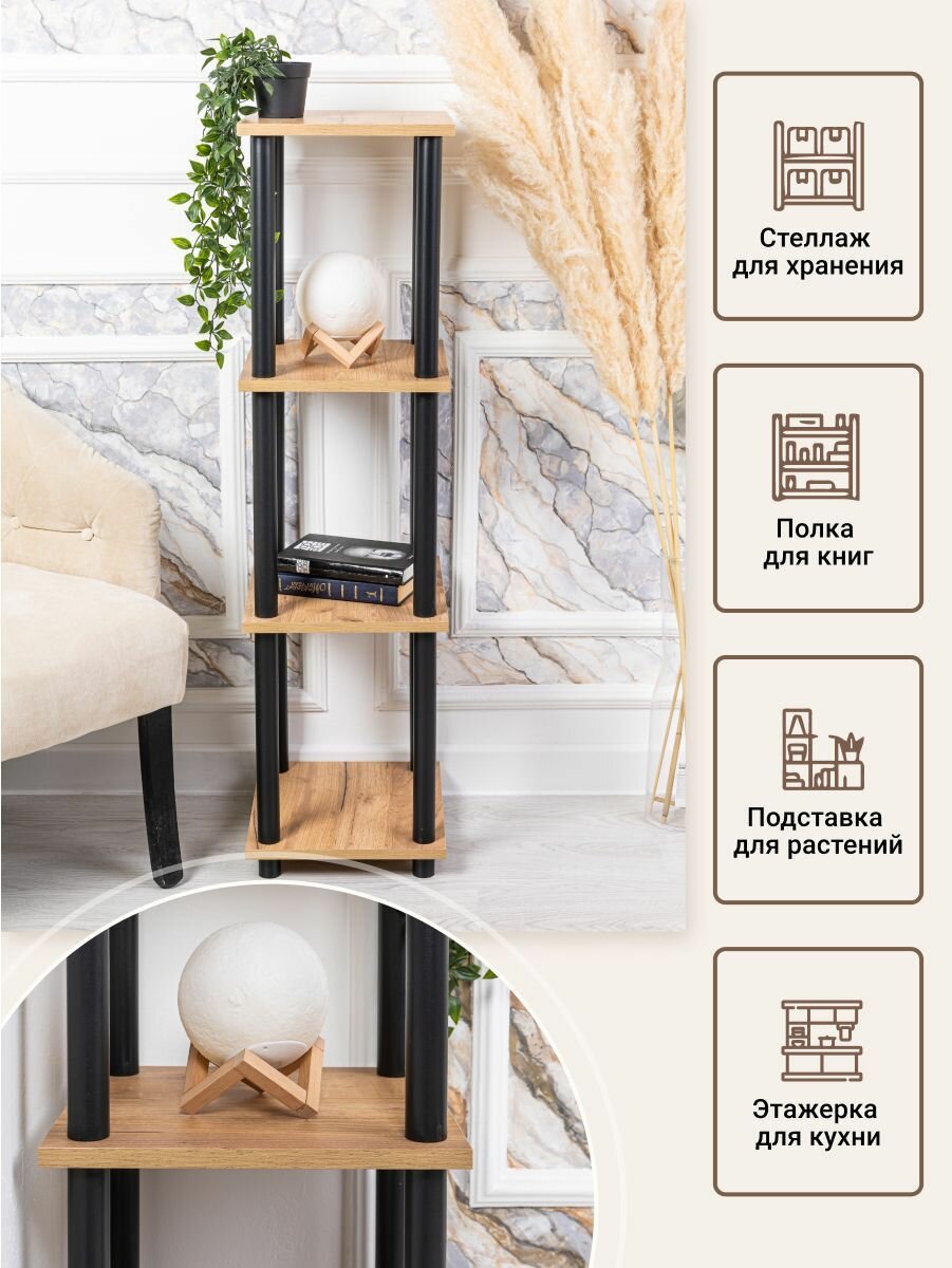 Стеллаж Айсберг Лофт 40/6 / Черный/ с полками дуб крафт табак/ Для дачи/ для дома/ для книг/ в офис