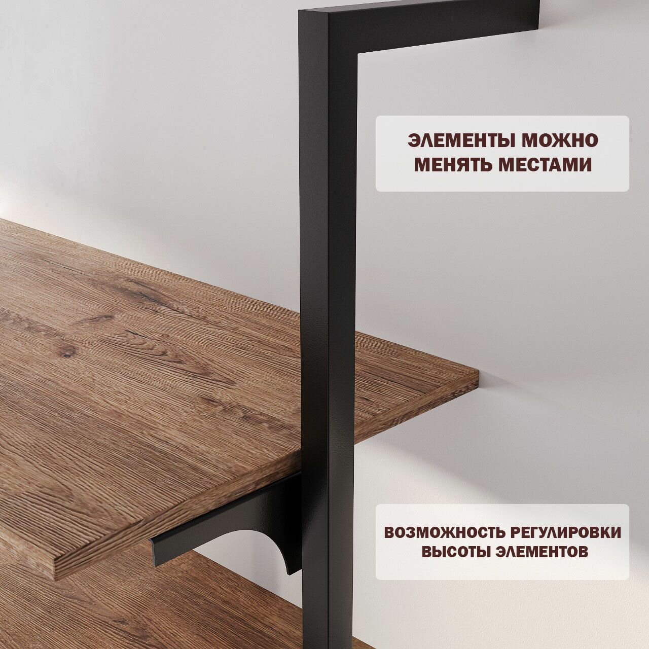 Стеллаж Айсберг Лофт 40/6 / Черный/ с полками дуб крафт табак/ Для дачи/ для дома/ для книг/ в офис